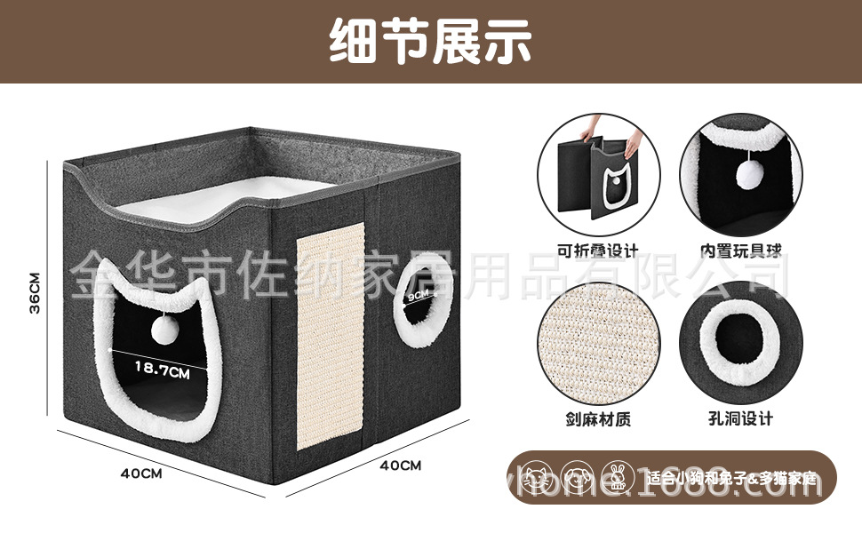 아마존 폭발 고양이 이중 뾰족한 귀 애완 동물 둥지 실내 접이식 고양이 사육장 개 사육장 제조 업체 재고 도매스토어 가기