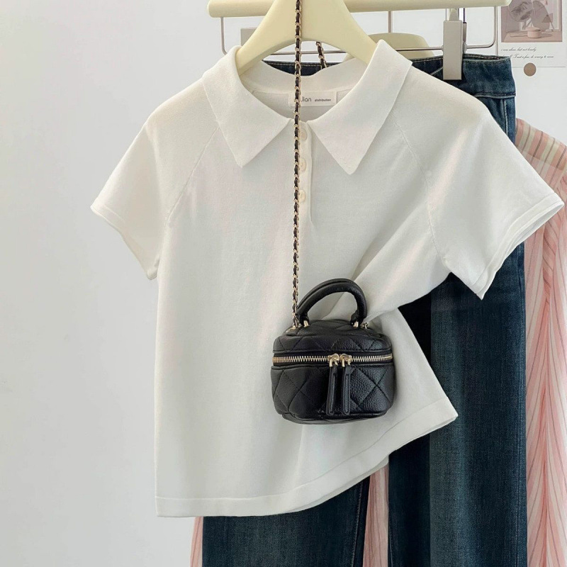 코튼 칼라 반팔 여성용 루즈한 한국식 하이엔드 심플 라펠 오른쪽 어깨 버튼 탑 캐주얼하고 다재다능함