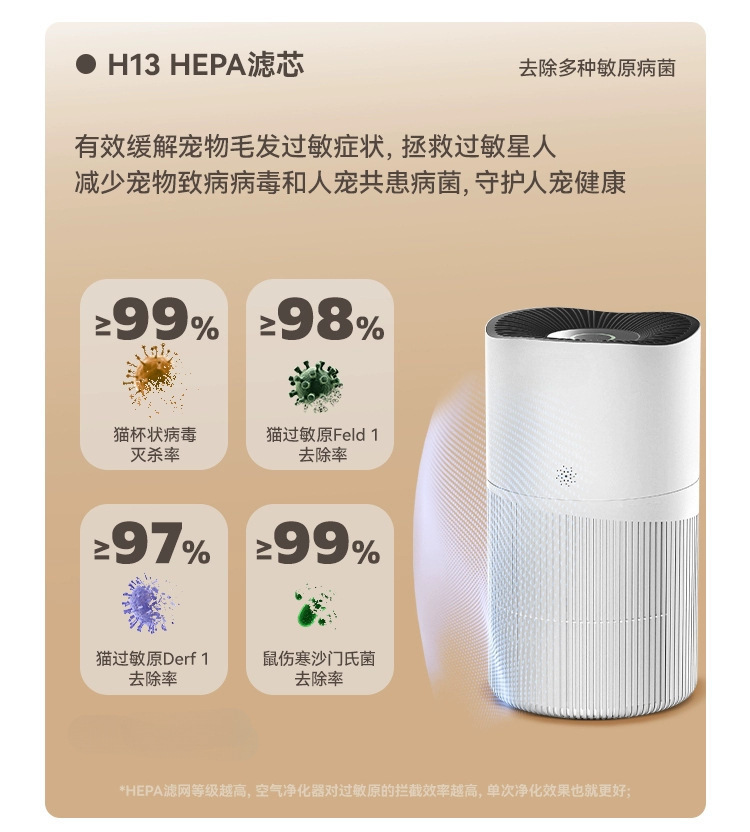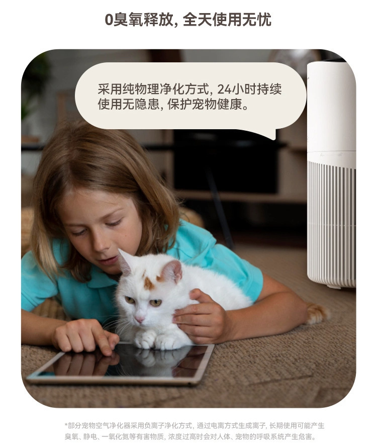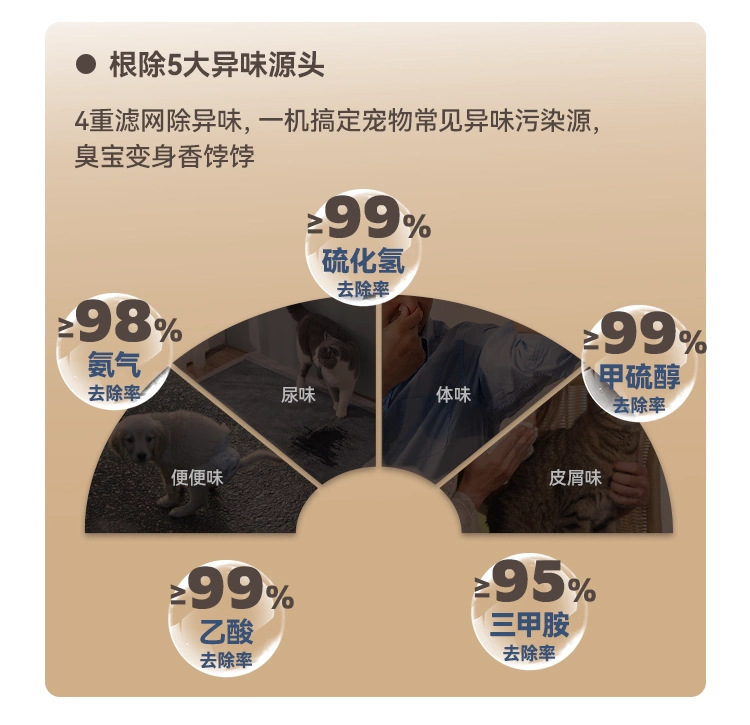 고양이털을 흡입하고 살균, 가정용으로 떠다니는 털을 제거하고 냄새, 냄새 알레르기 항원을 제거하는 애완동물 공기청정기