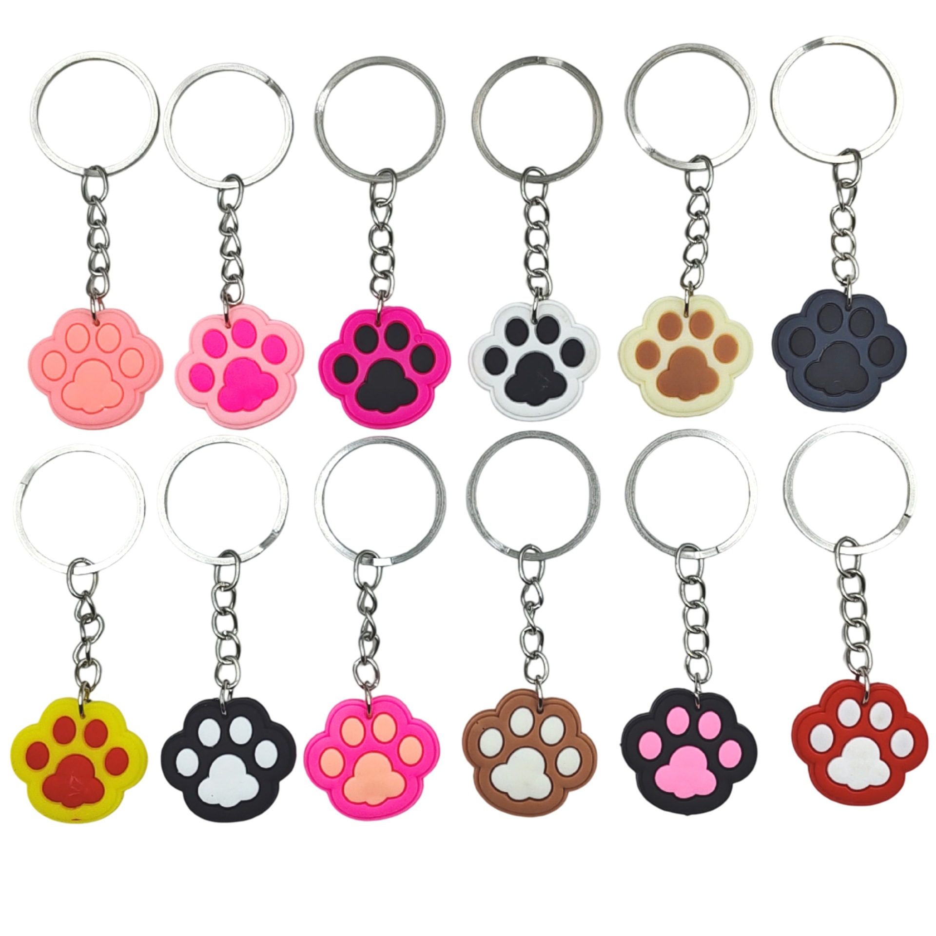 만화 발 인쇄 키 체인 개 발톱 고양이 발톱 PVC 부드러운 고무 키 체인 가방 보석 펜던트 작은 선물 재고