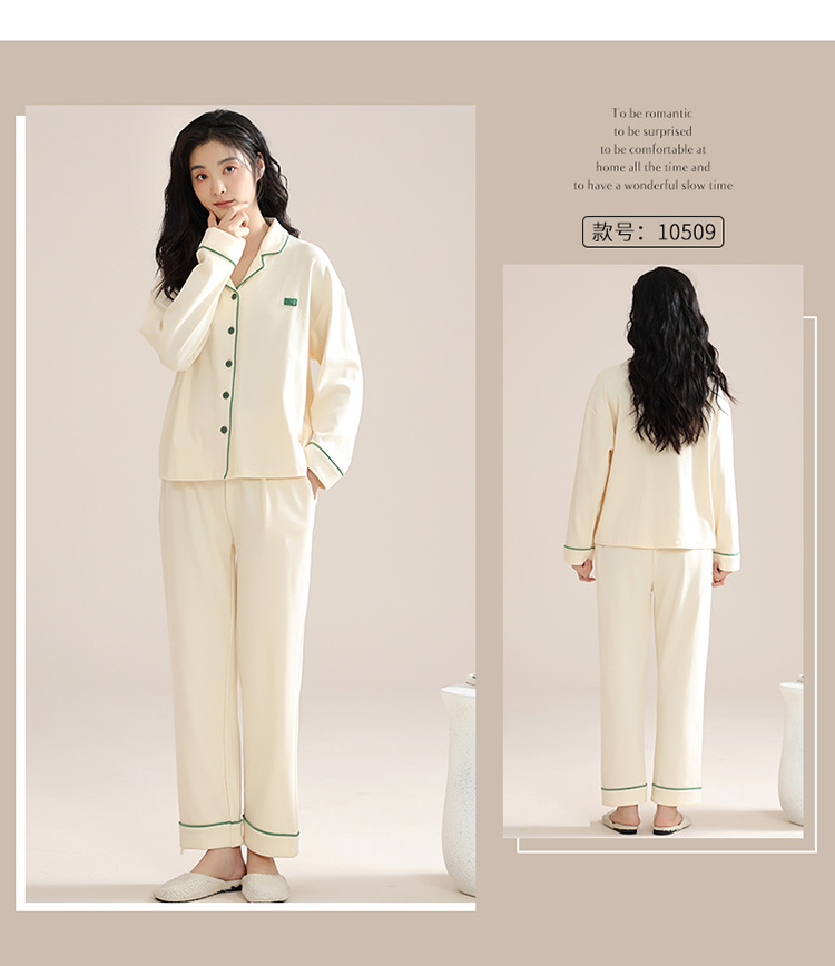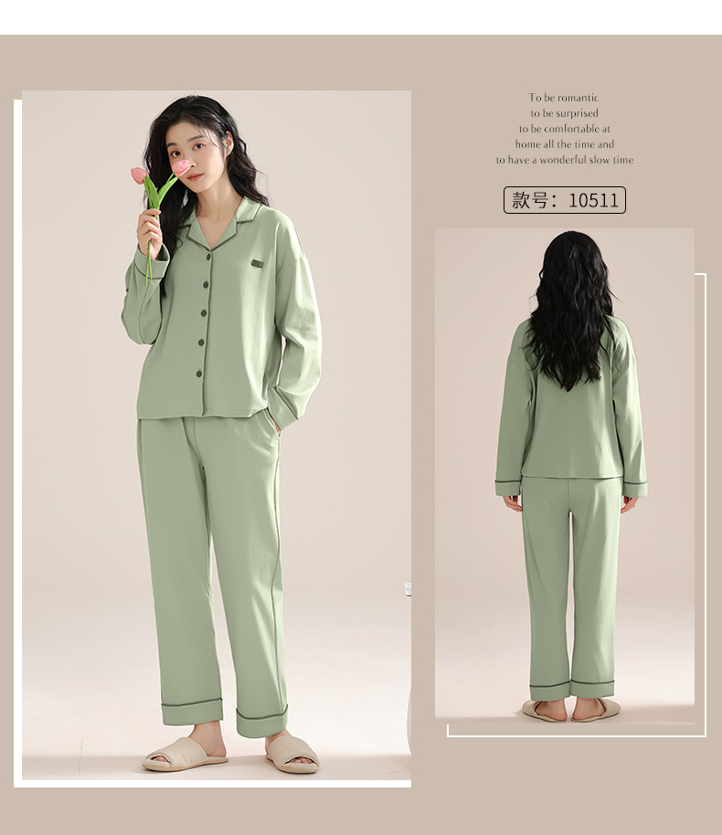 여성용 면 100% 잠옷, 가을 겨울 긴팔 바지, 봄 홈웨어, 루즈한 대형 심플 가디건 슈트스토어 가기