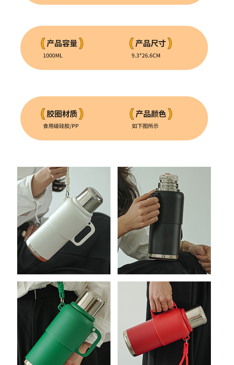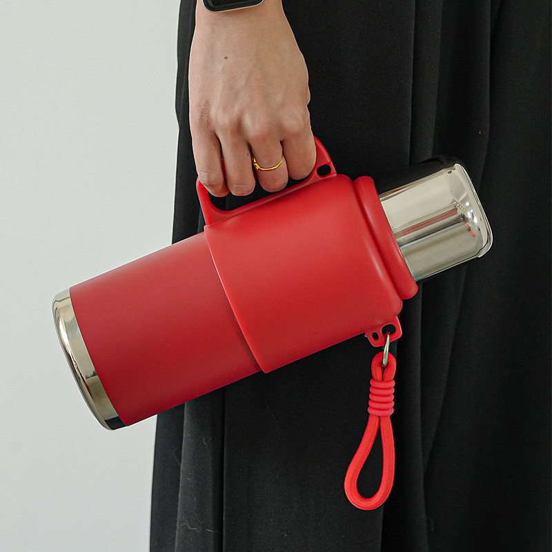 국경 간 대용량 304 총알 전체 강철 보온병 컵 행군 등산 여행 주전자 스트랩 휴대용 스포츠 워터 컵