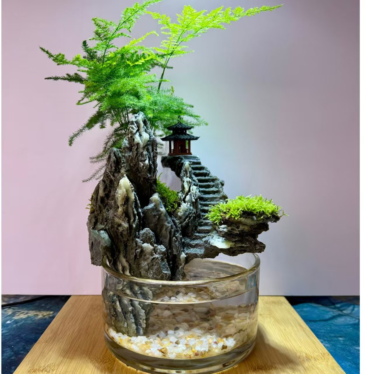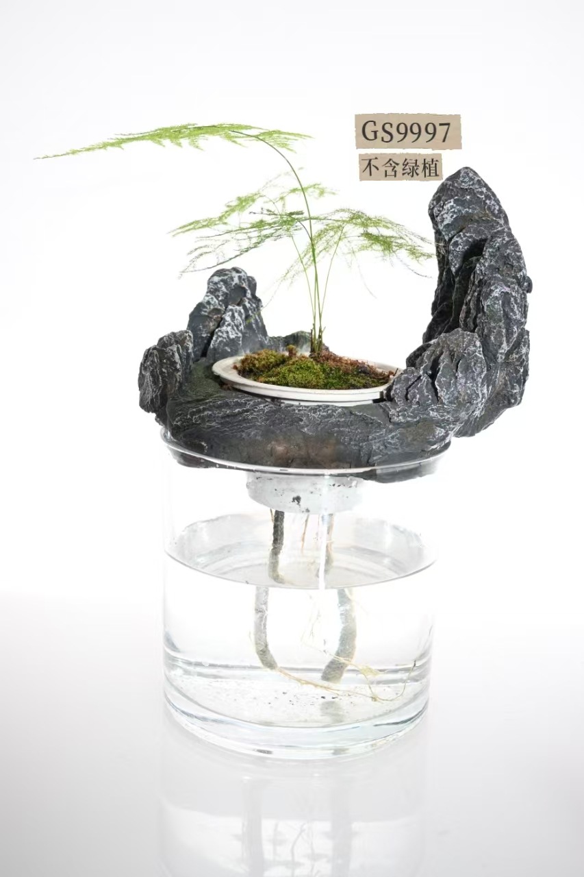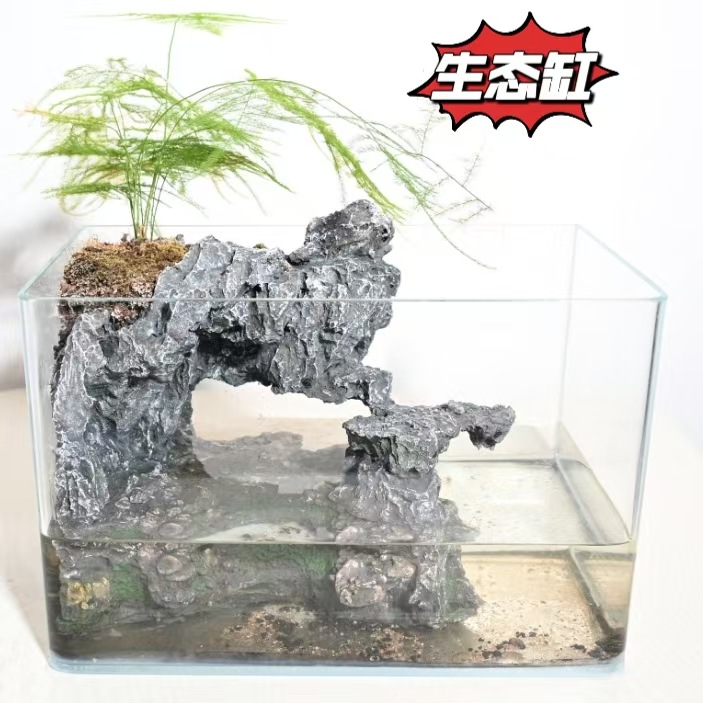 바닥에 놓는 직선형 유리 어항, 새로운 원통형 석가산 모양 거북이 어항, 거실 꽃병, 수경 장식품, 생태 어항