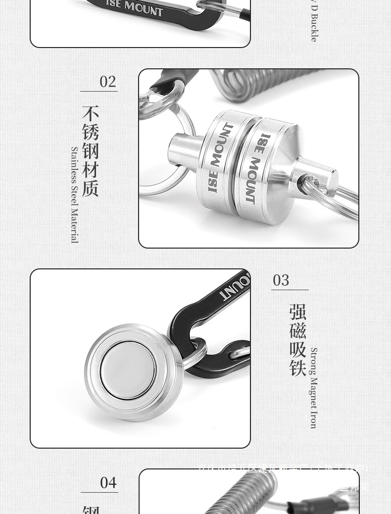 야외 스테인레스 스틸 마그네틱 미싱 로프 텔레스코픽 로프 마그네틱 교수형 버클 금속 등산 로프 와이어 로프 키 체인 끈