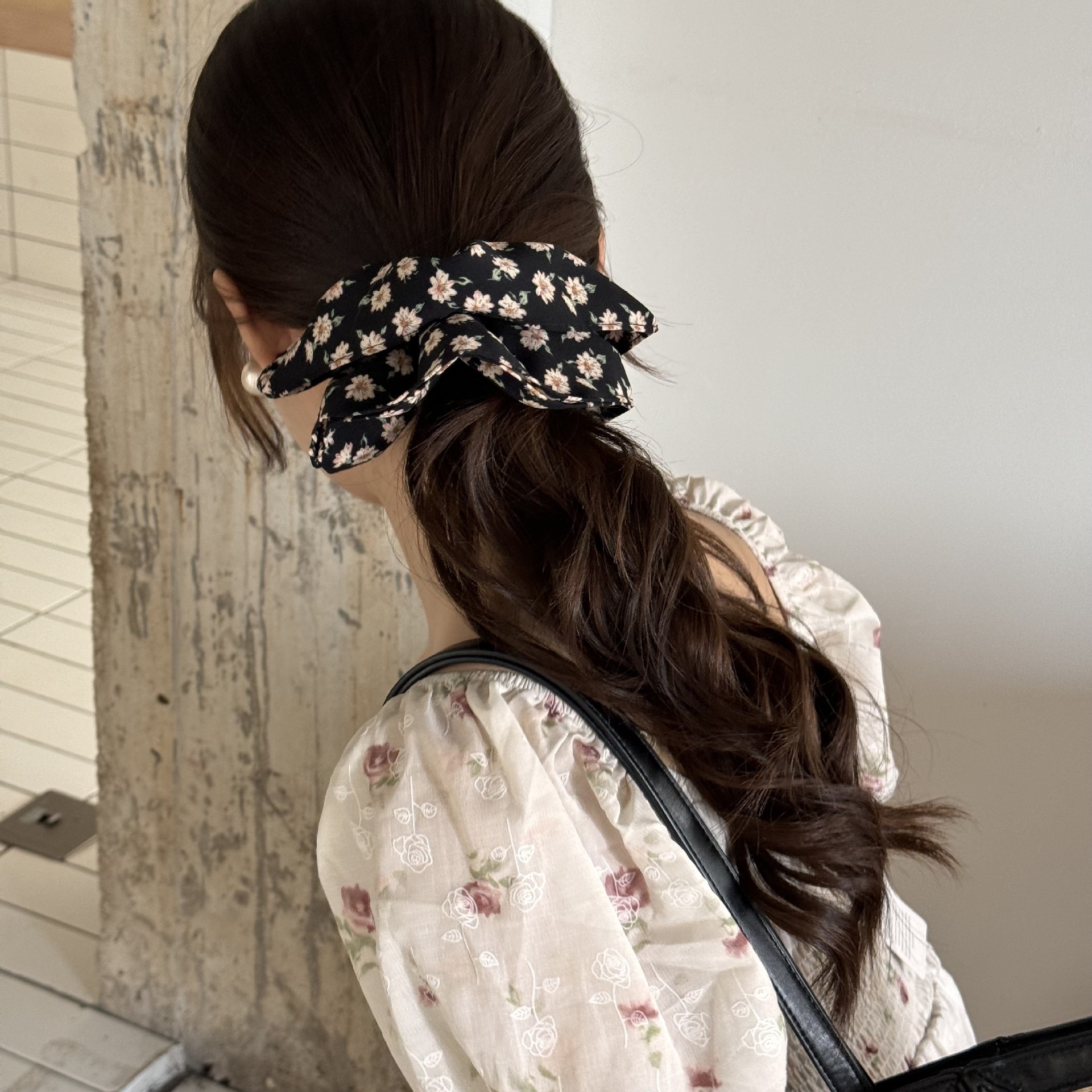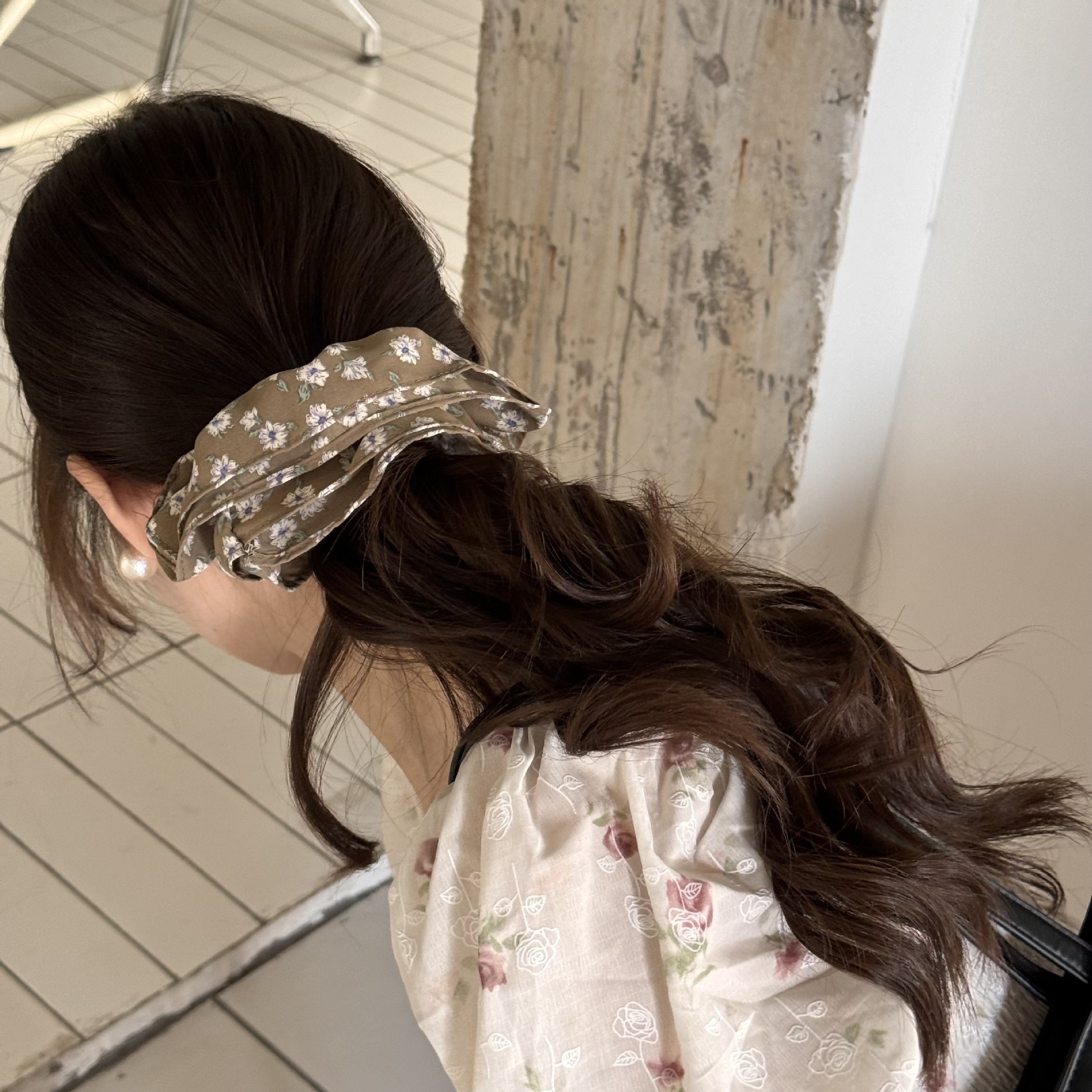 여름 쉬폰 꽃무늬 머리끈, 고급스럽고 귀여운 소녀들을 위한 다용도 헤어 액세서리, 포니테일 러플 헤어 로프 헤어 액세서리스토어 가기