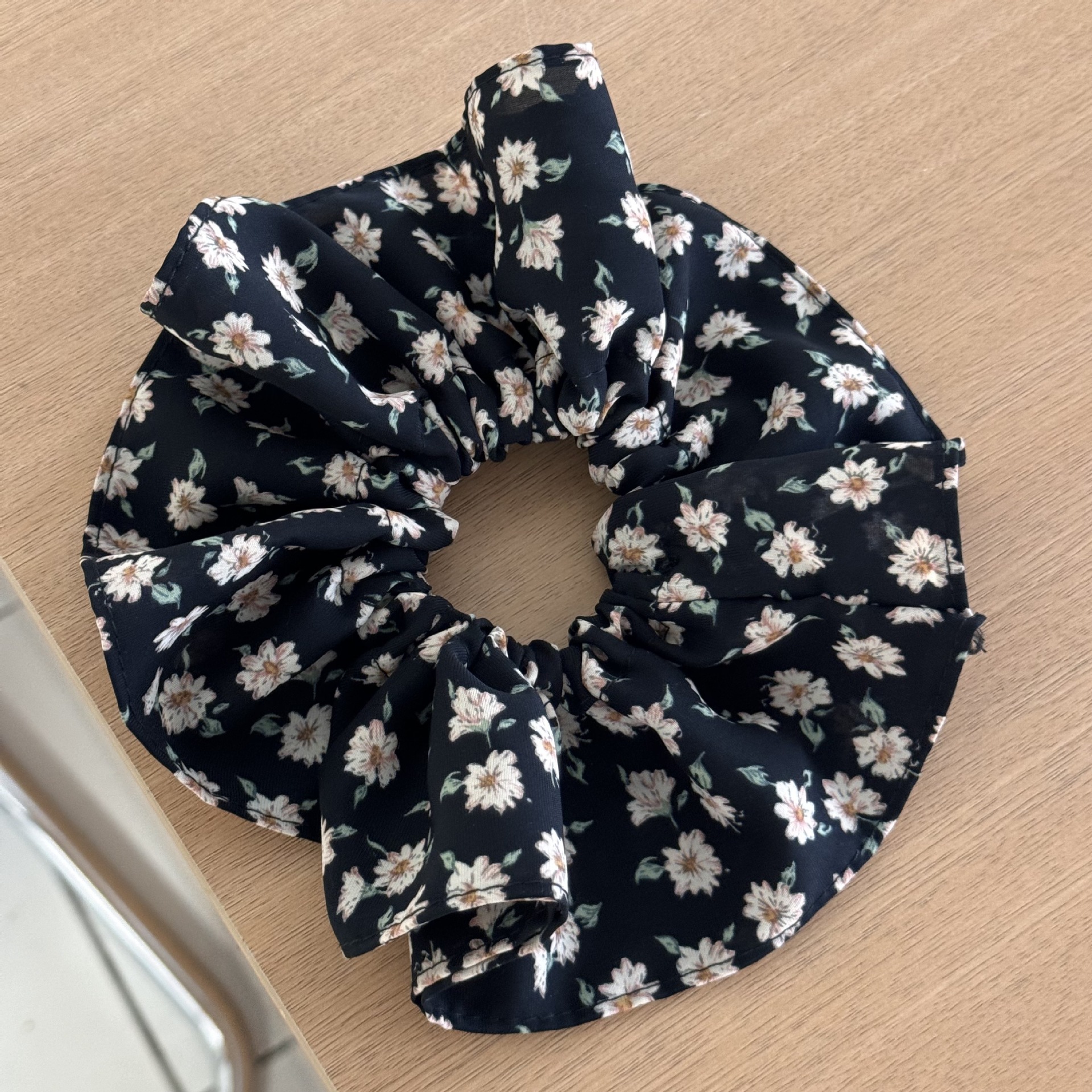 여름 쉬폰 꽃무늬 머리끈, 고급스럽고 귀여운 소녀들을 위한 다용도 헤어 액세서리, 포니테일 러플 헤어 로프 헤어 액세서리