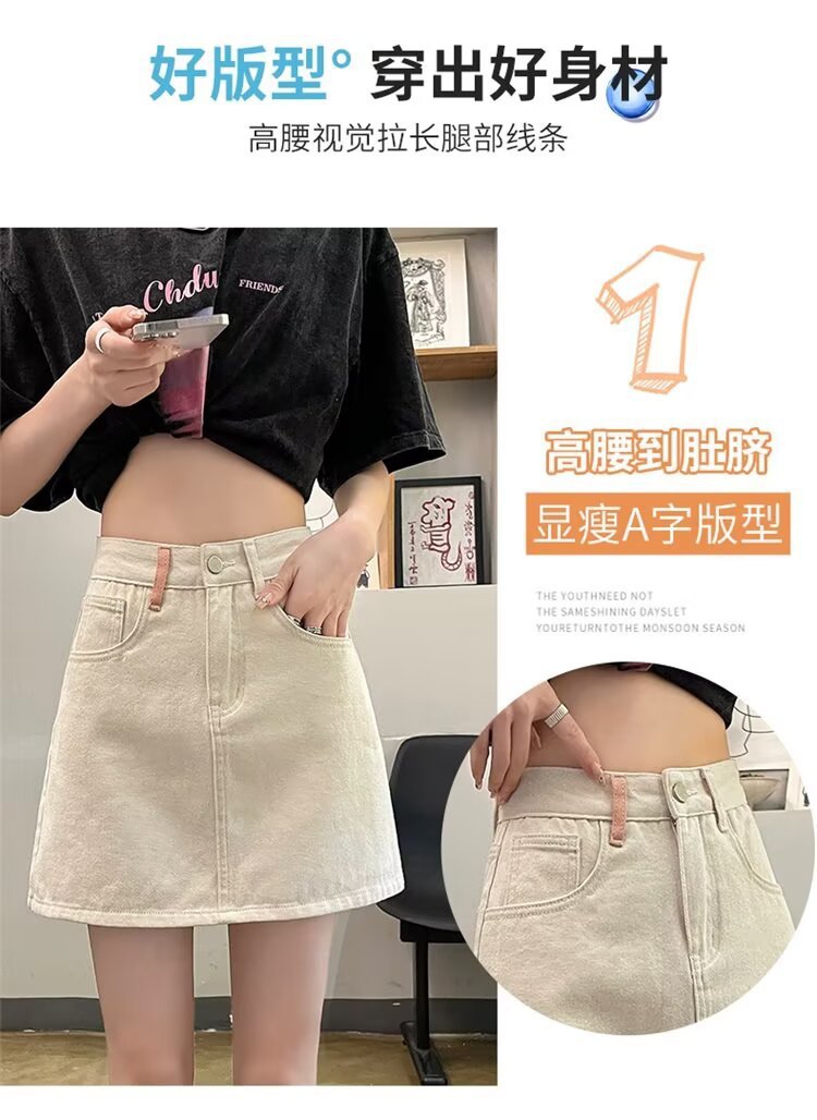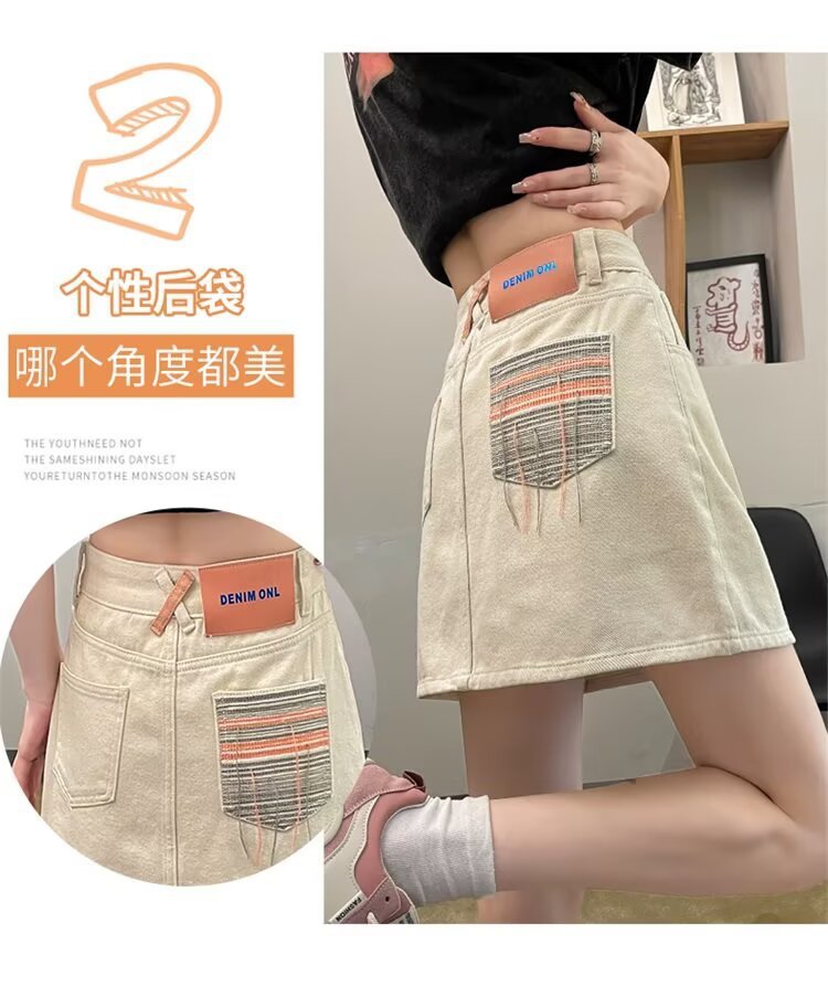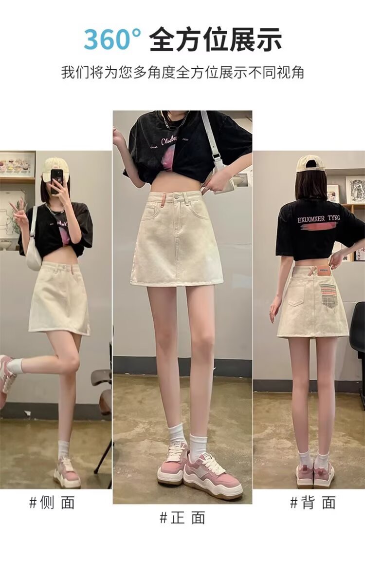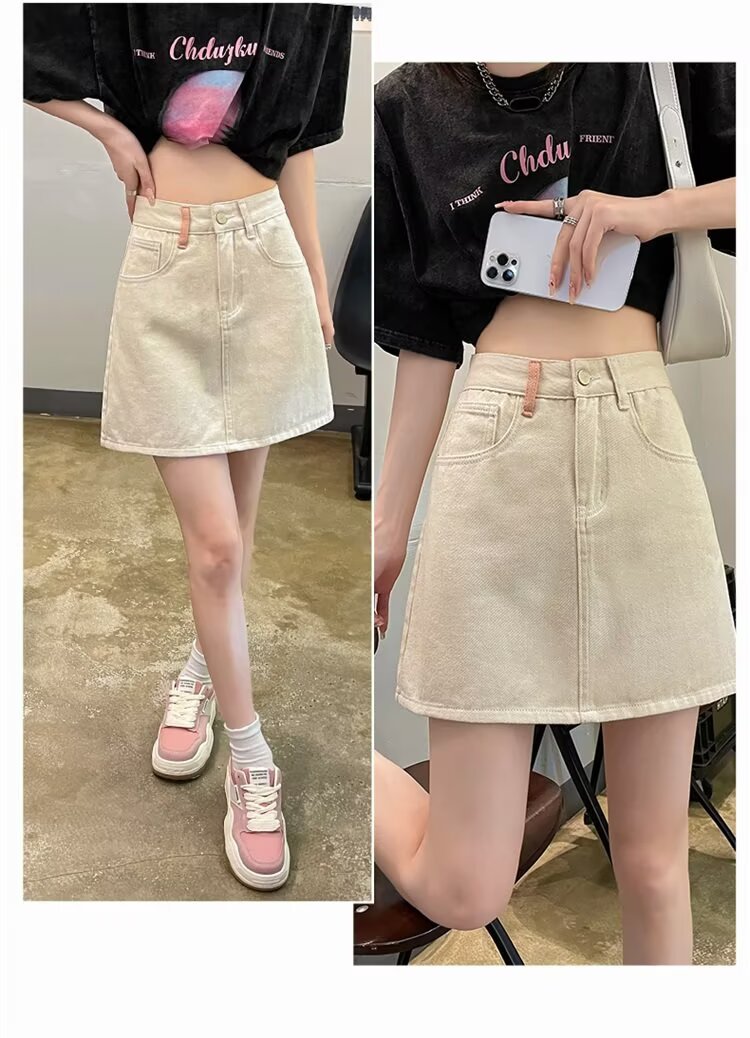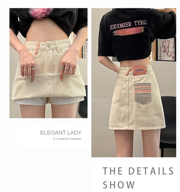 여성을위한 미색 로우 웨이스트 데님 스커트 2025 새로운 여름 스타일 핫 소녀 핫 팬츠 섹시하고 꽉 끼는 슬리밍 엉덩이 커버 초단스토어 가기