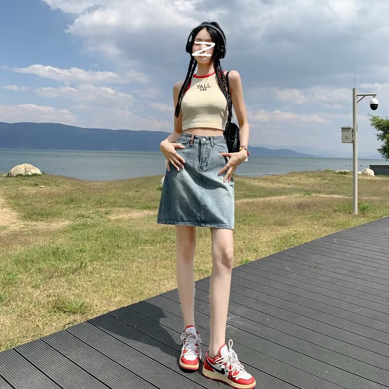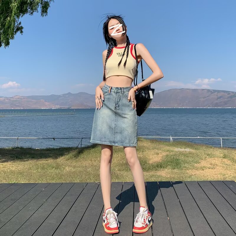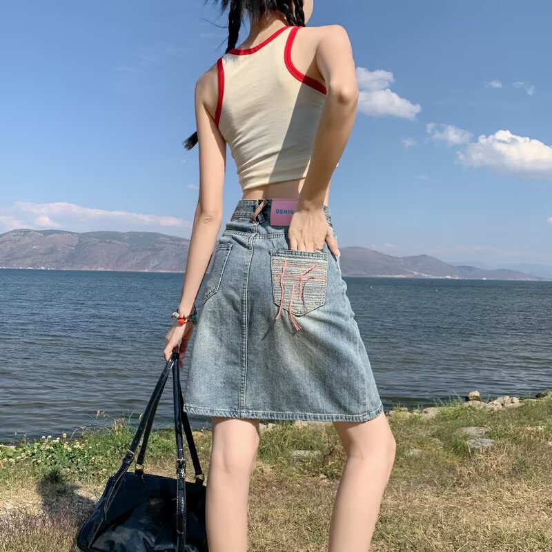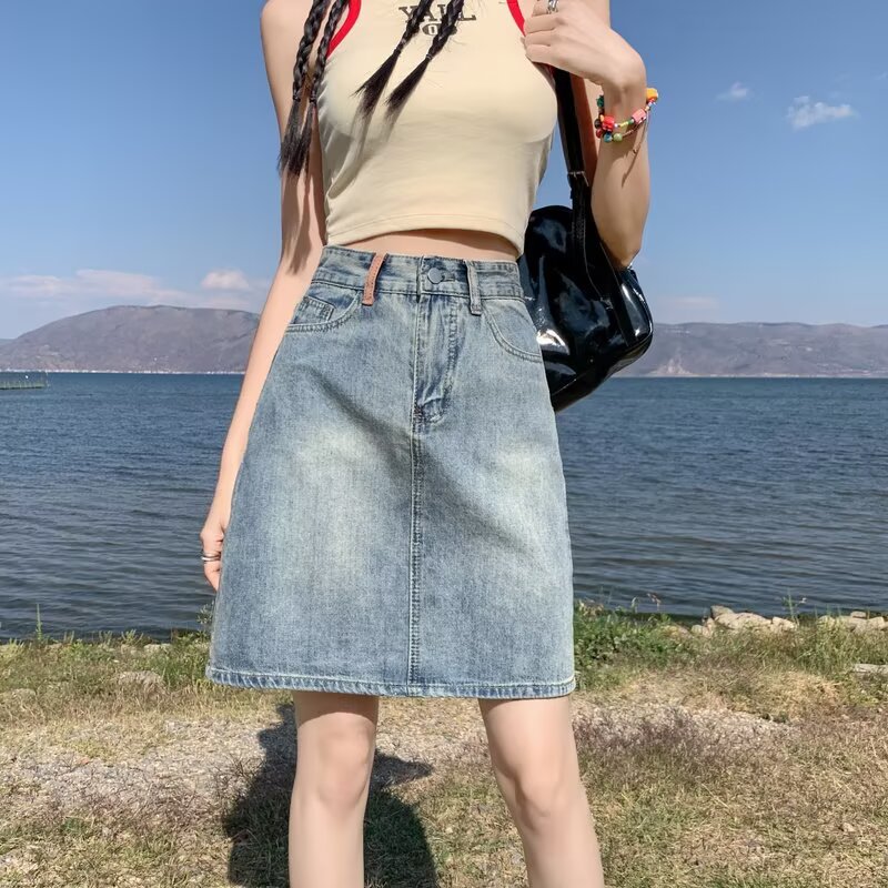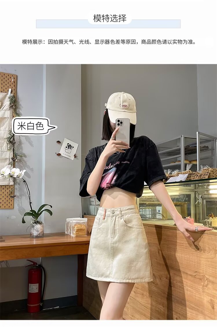 여성을위한 미색 로우 웨이스트 데님 스커트 2025 새로운 여름 스타일 핫 소녀 핫 팬츠 섹시하고 꽉 끼는 슬리밍 엉덩이 커버 초단스토어 가기