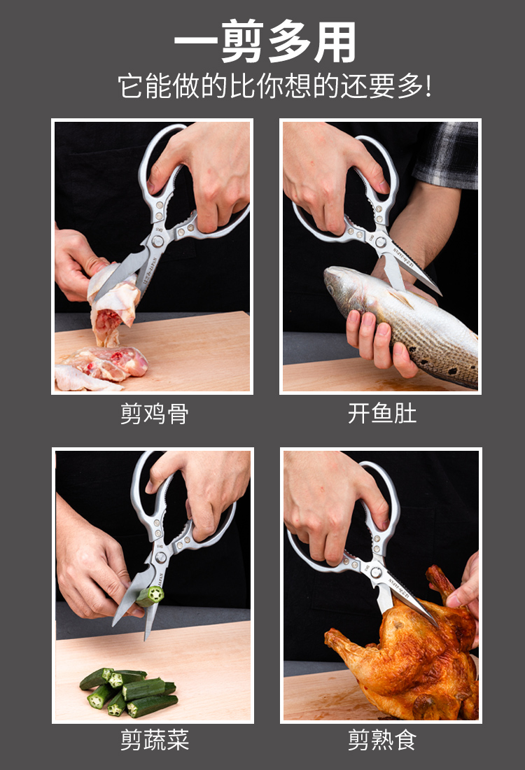 새로운 2025 가위 가정용 뼈 절단 닭 뼈 가위 5 세대 알루미늄 합금 다기능 가위 전체 강철 주방