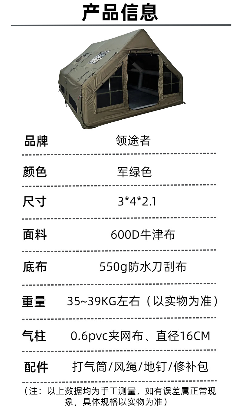 제조업체 직접 풍선 텐트 12 평방 미터 야외 캠핑 600D 옥스포드 천 방수 및 방풍 전문 야외 캠핑