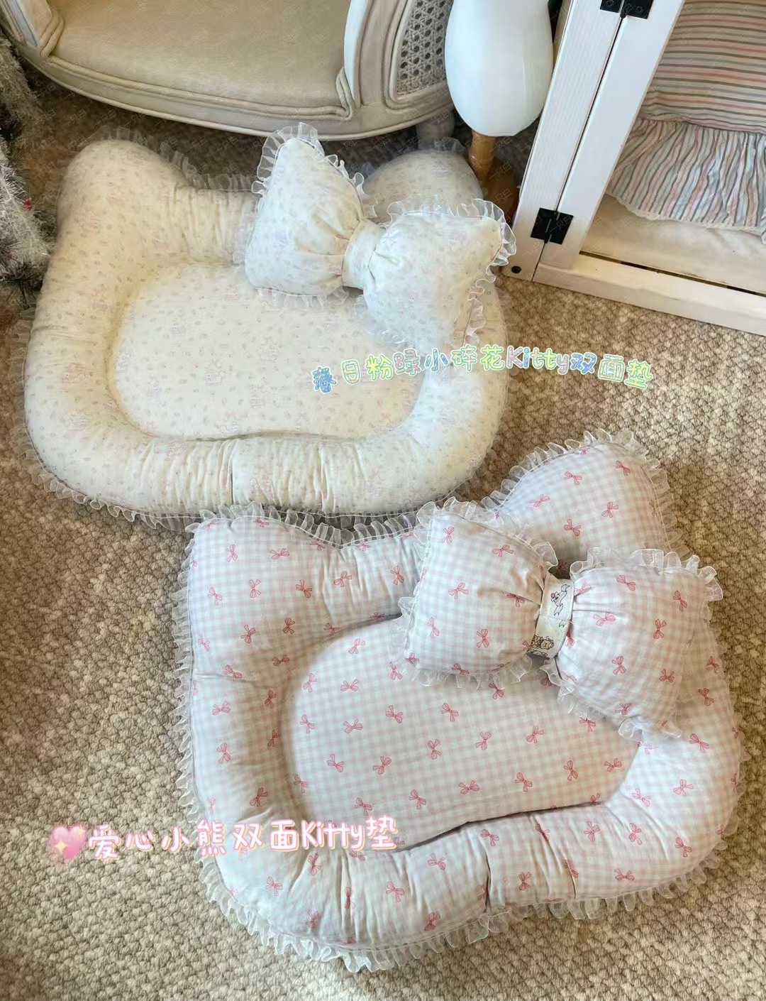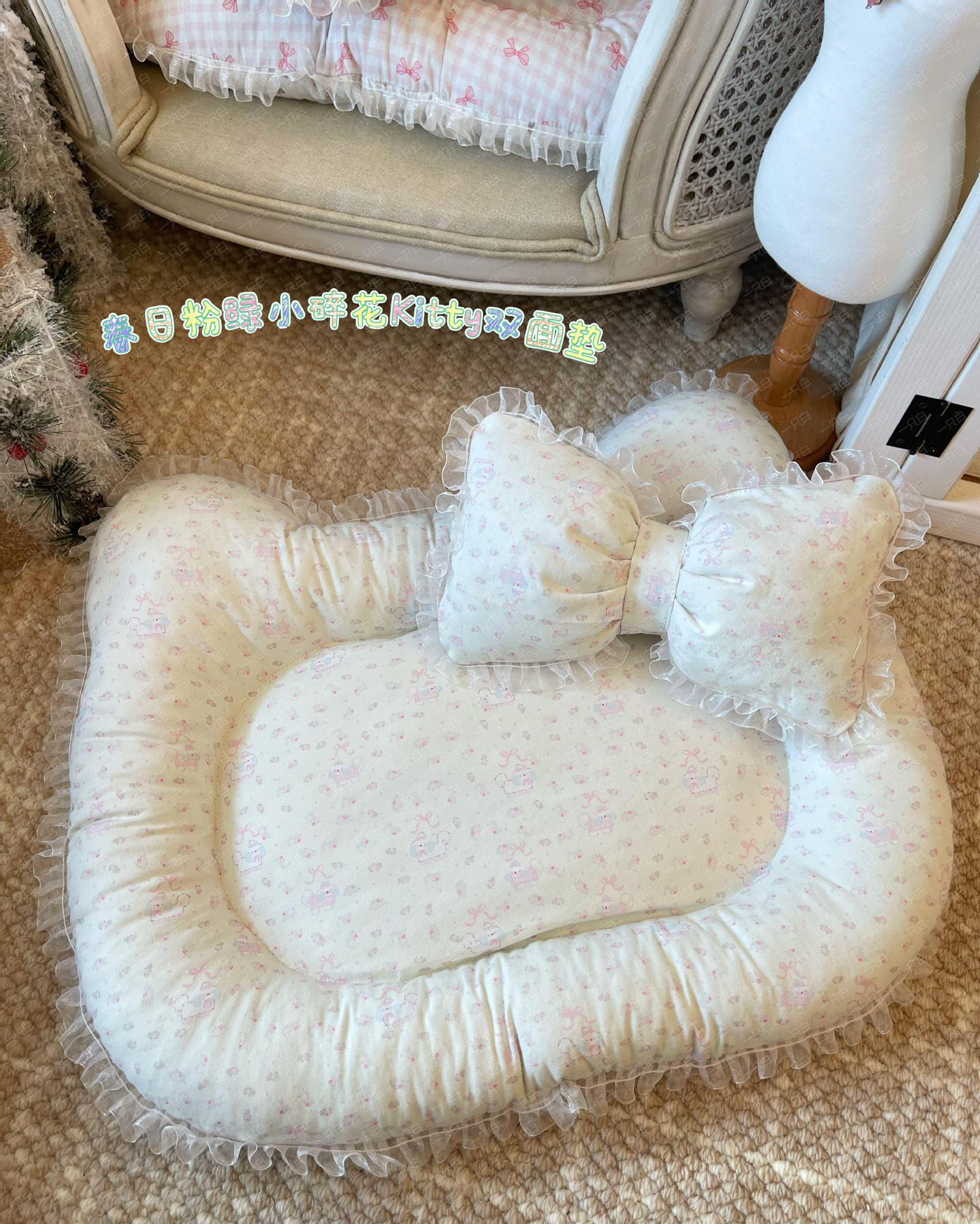 KT 모양 양면 인쇄 패턴 한국식 꽃 색상 매칭 핑크 보우 작은 애완견 개집 개 매트
