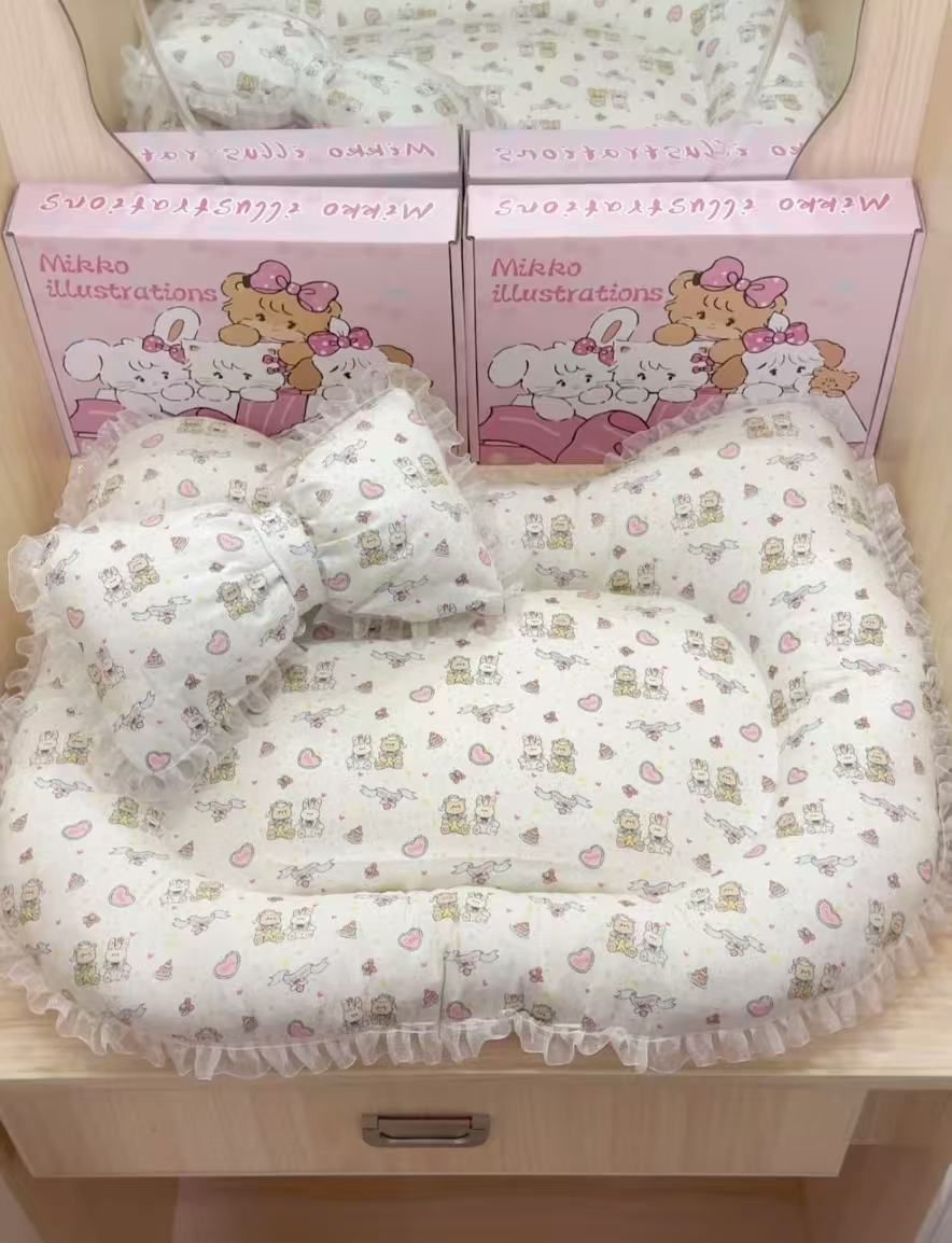 KT 모양 양면 인쇄 패턴 한국식 꽃 색상 매칭 핑크 보우 작은 애완견 개집 개 매트스토어 가기
