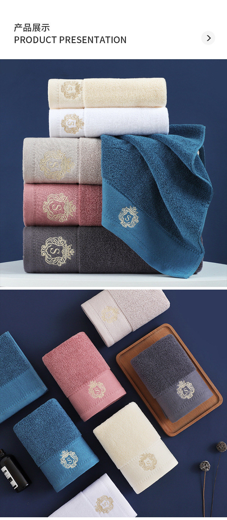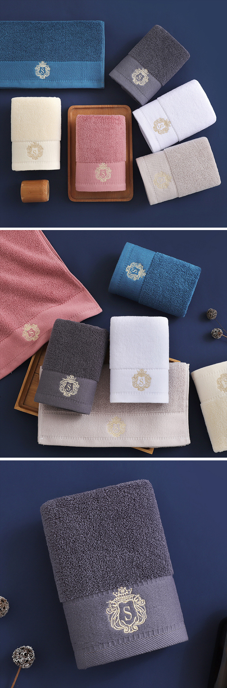 스타 호텔 면 수건, 어두운 색상, 흡수성, 보푸라기가 없는 세안 가정용 기념품, 자수 목욕 수건 세트, 국경 간스토어 가기