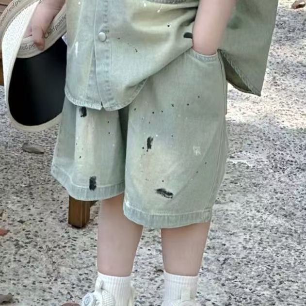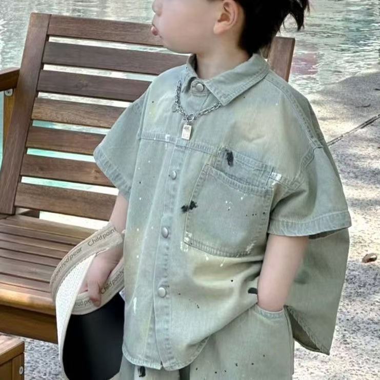 소년 여름 원피스 세트 2025 새로운 잘 생긴 소년 여름 얇은 서양식 어린이 셔츠 투피스 반팔 세트
