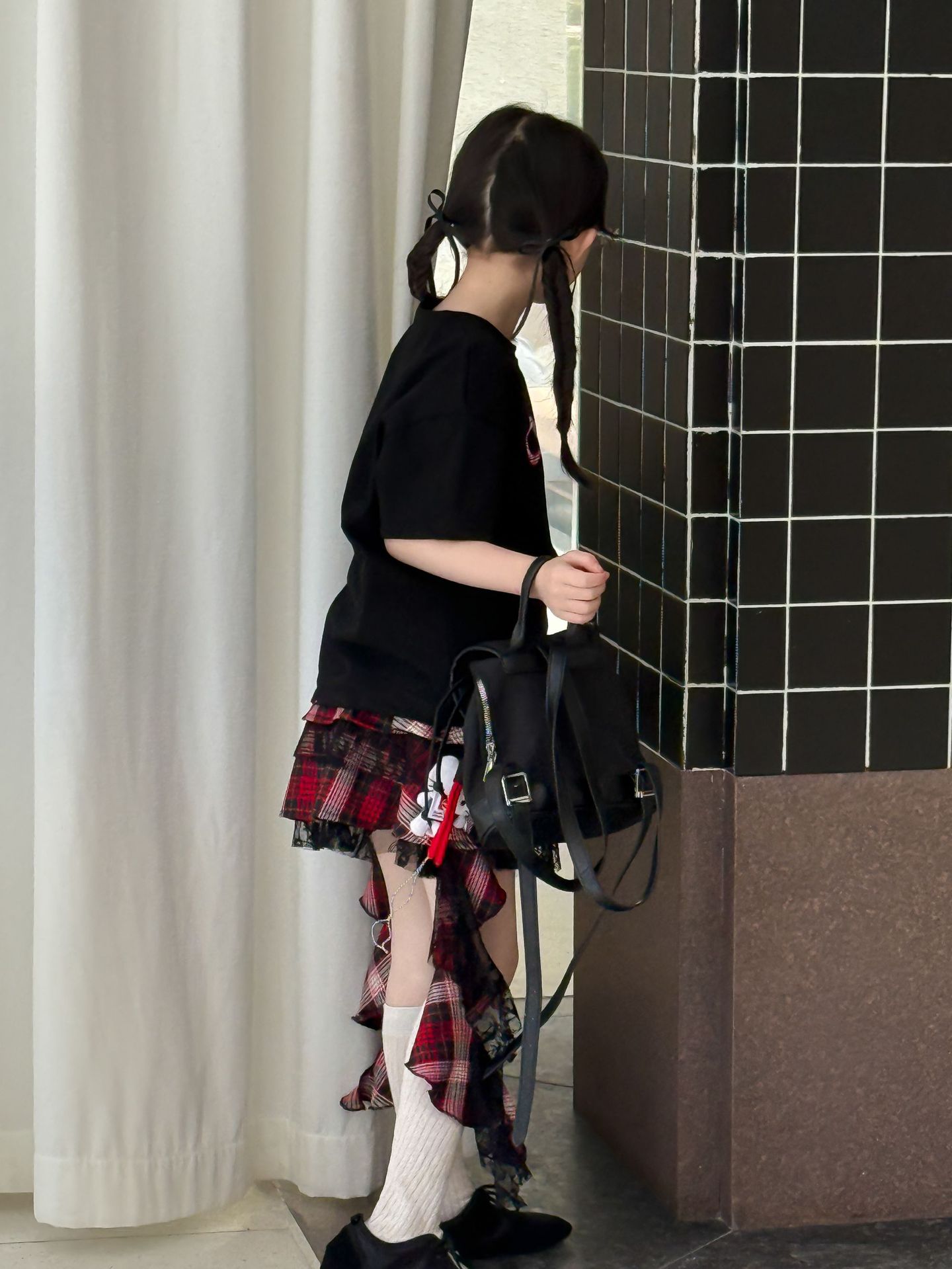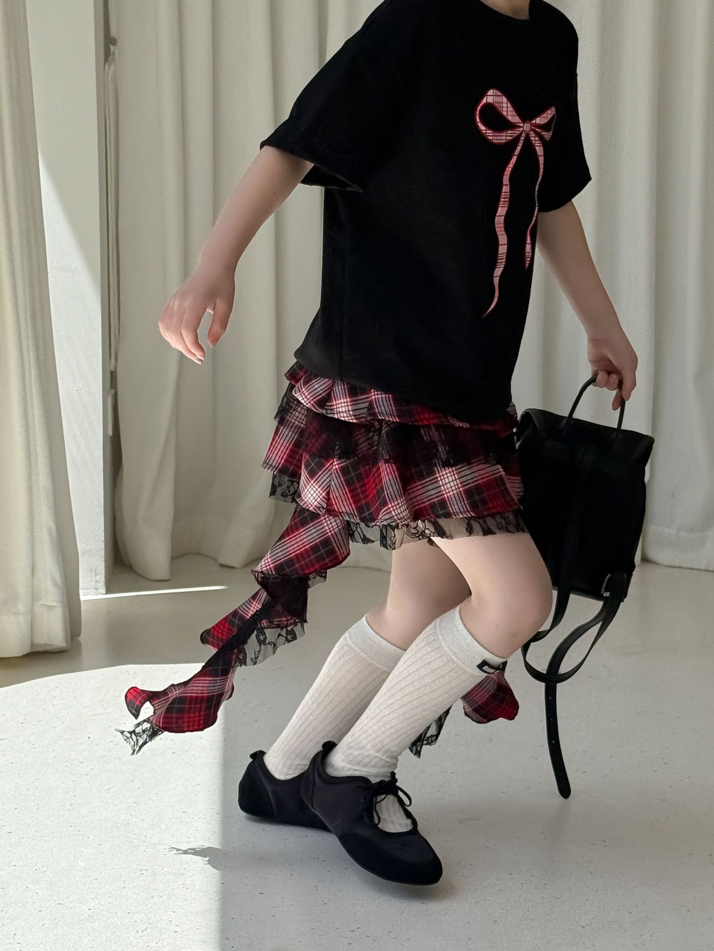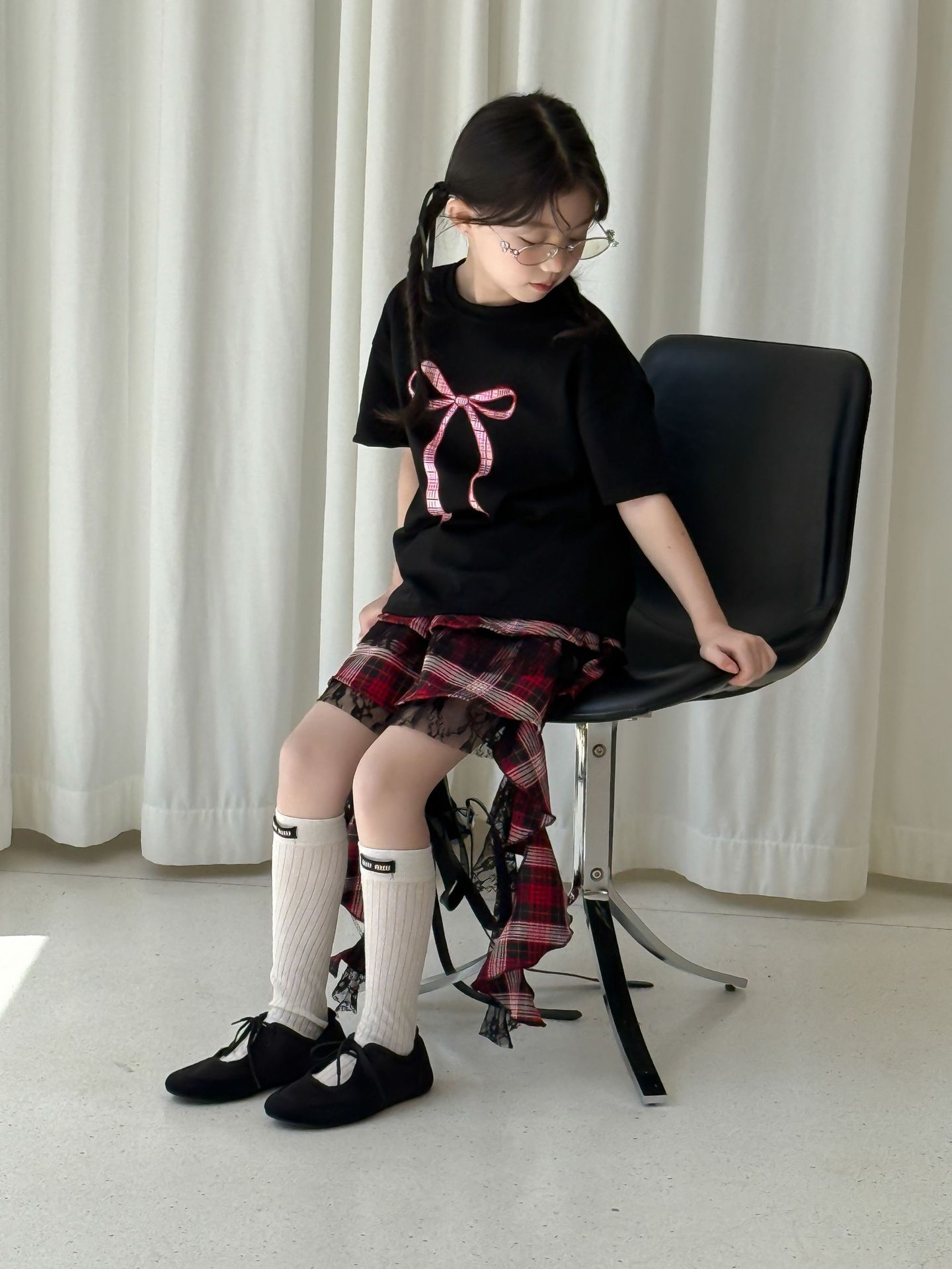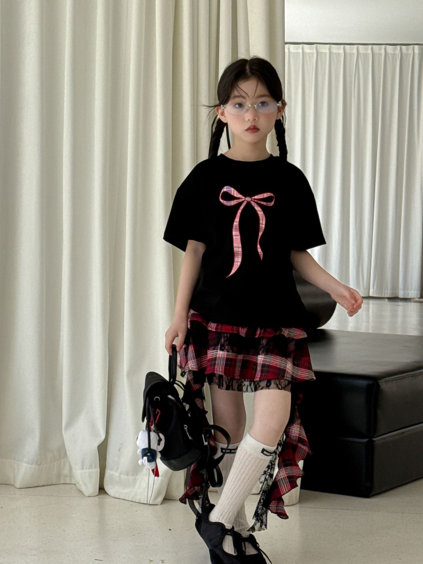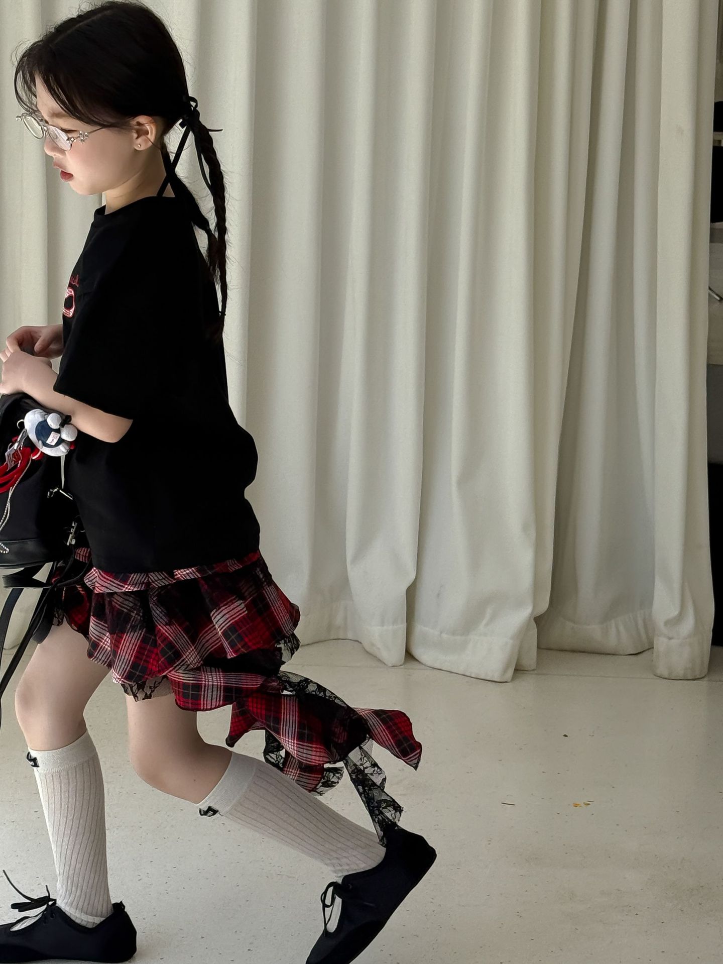 어린이 치마 2025 여름 새로운 소녀 디자인 센스 레드 체크 무늬 주름 케이크 스커트 소녀의 세련된 레이스 스커트스토어 가기