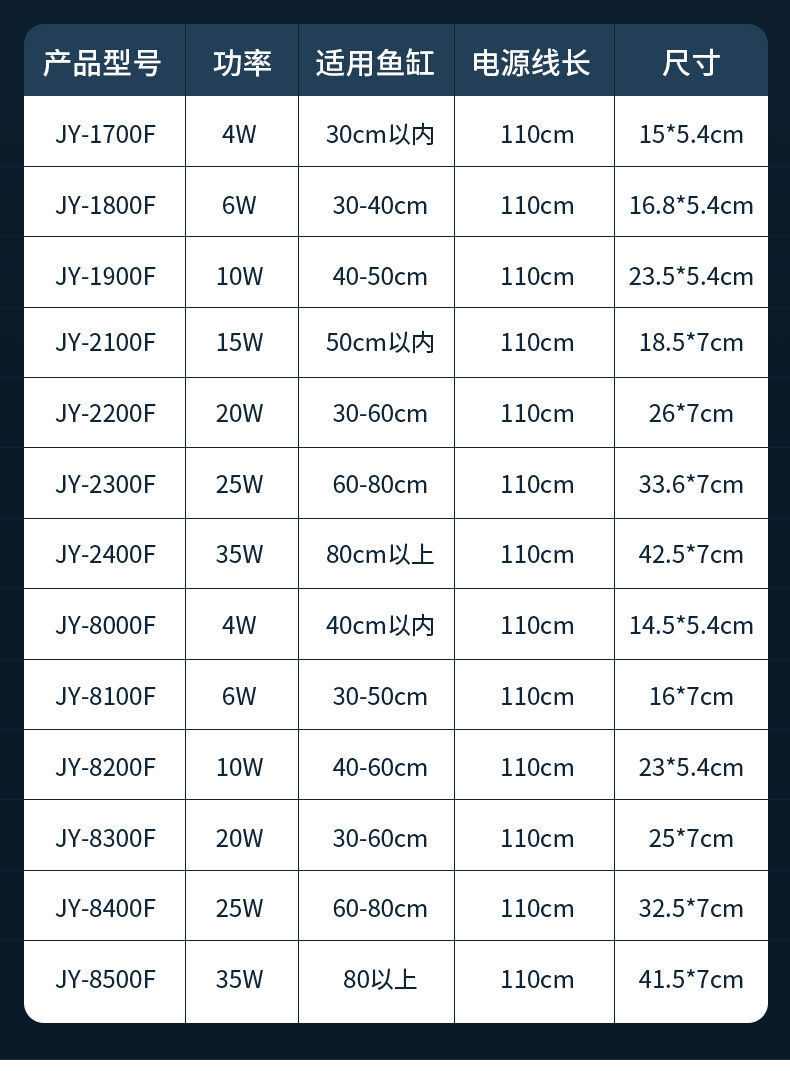• 강화된 흡입 4W (30CM 길이 이하 수조)