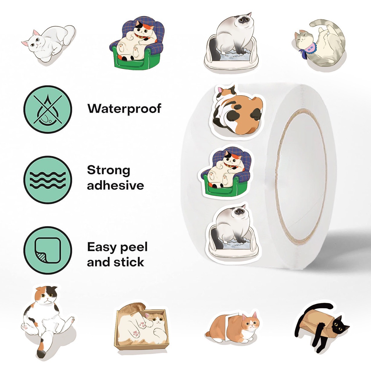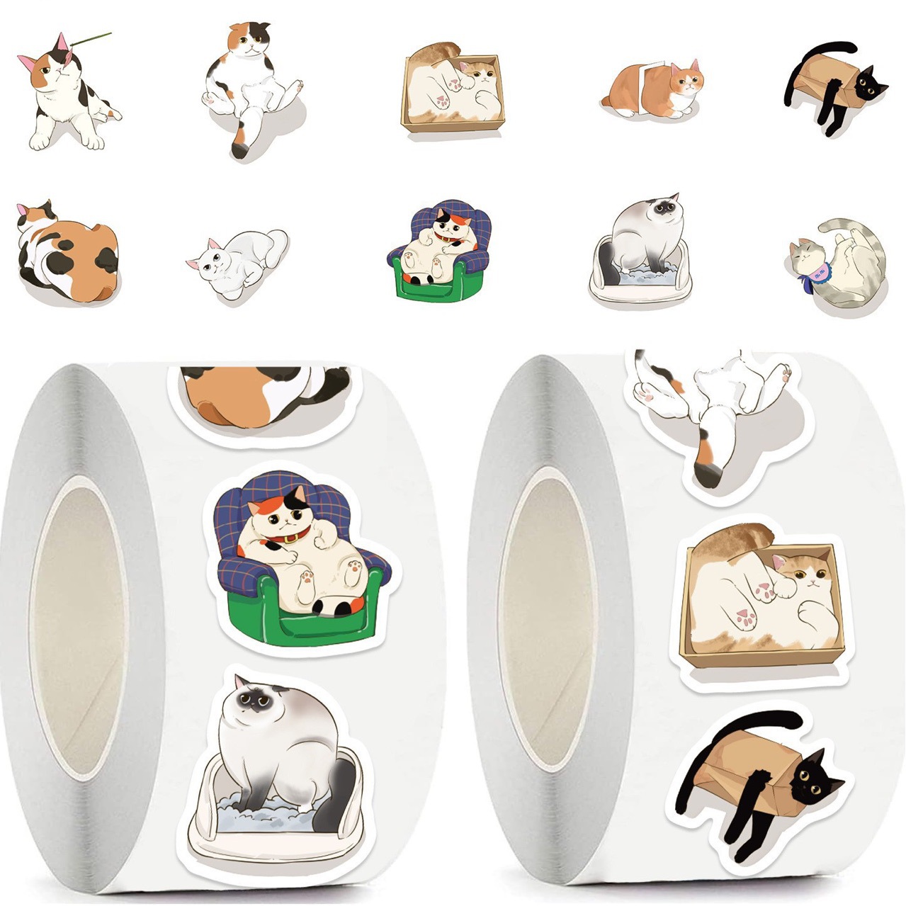 500 시트/롤 롤 스티커 국경 간 인기 판매 테이프 만화 고양이 스티커 핸드북 재료 장식 봉투 씰링 스티커 h