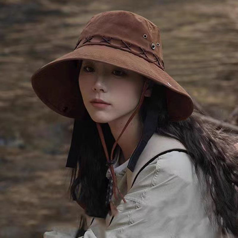 • 브라운(커피)-스웨이드 크로스 로프 하이킹 모자