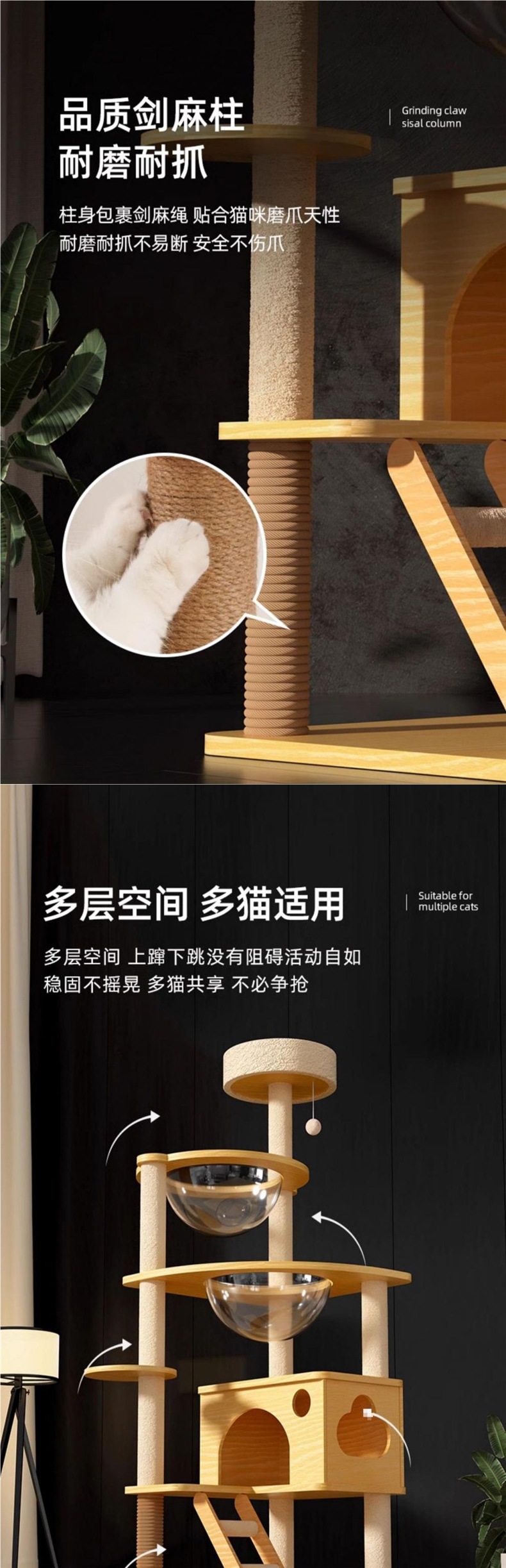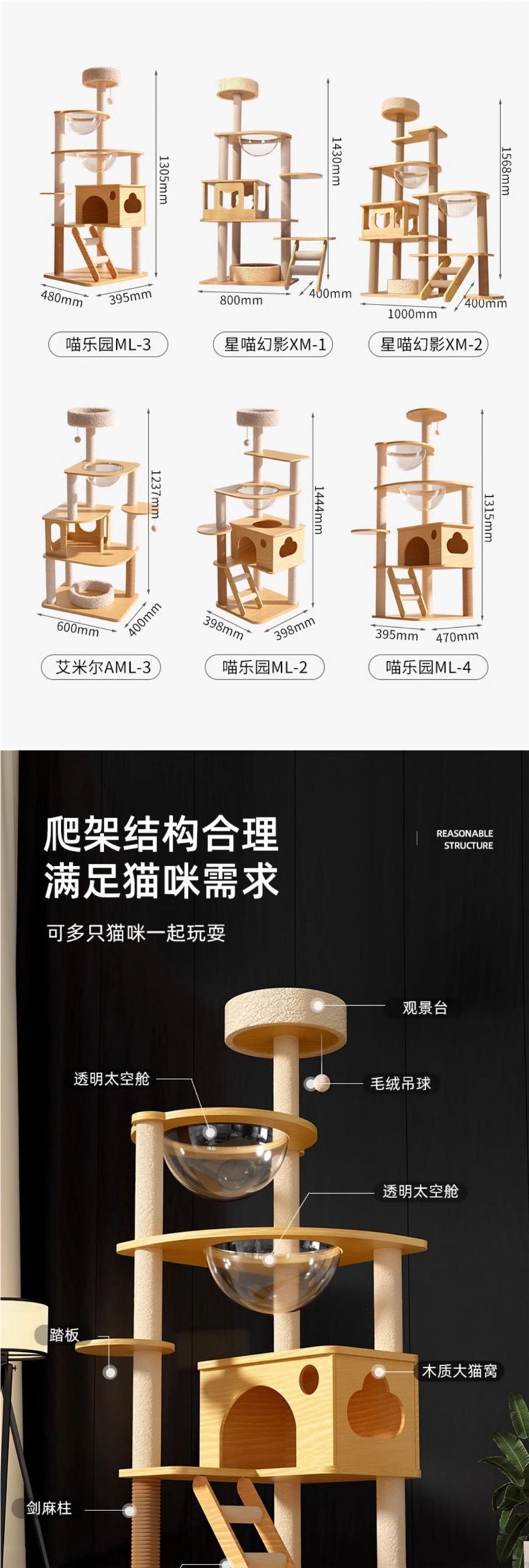 고양이 클라이밍 프레임, 고양이 둥지, 고양이 트리, 원목 일체형 우주 캡슐, 스카이 컬럼 고양이 선반, 삼나무 장난감, 고양이 용품 도매스토어 가기