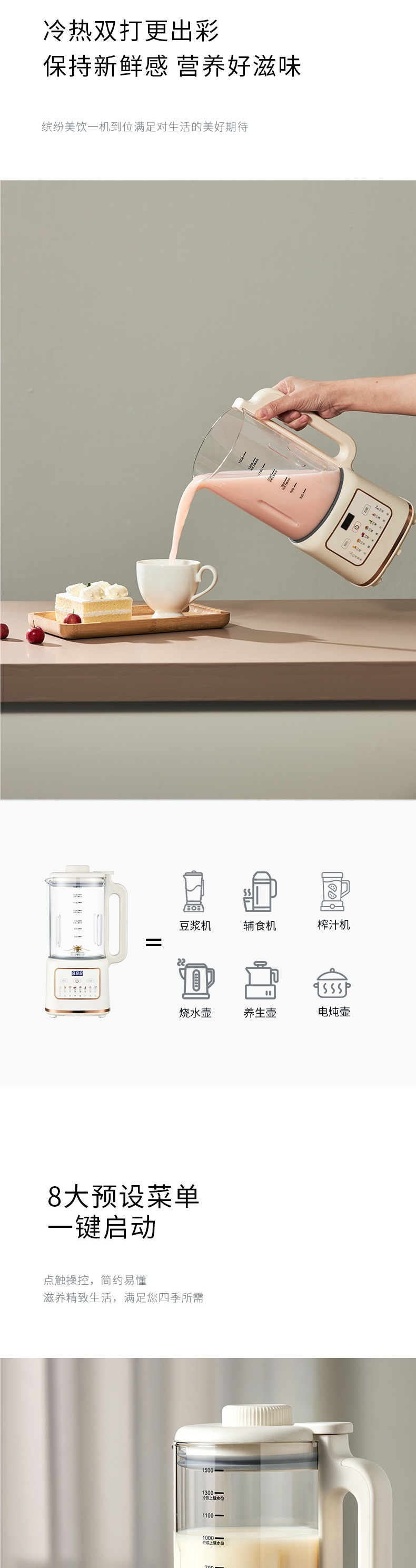 • 유리 라이너 1800ML [48페이지 황금 티타늄 칼 + 항균 티타늄 도금 섀시]