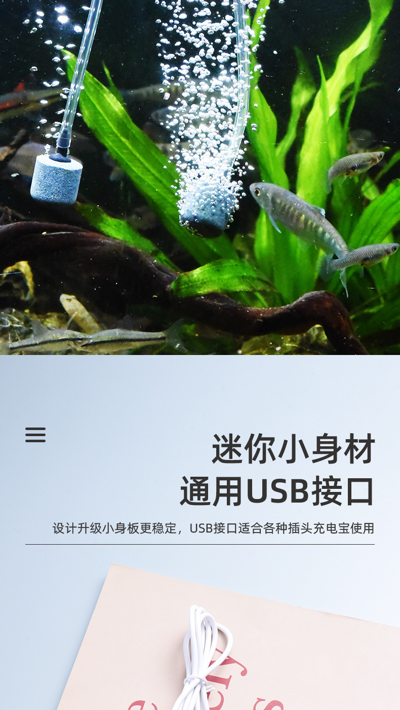 USB 수조 산소 펌프 가정용 미니 산소 펌프 야외 낚시 산소 공급을위한 초소형 자동 산소 공급기