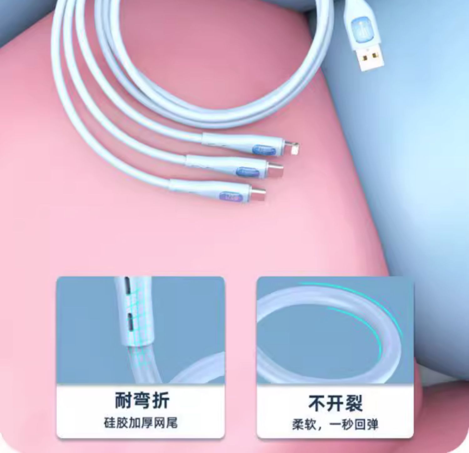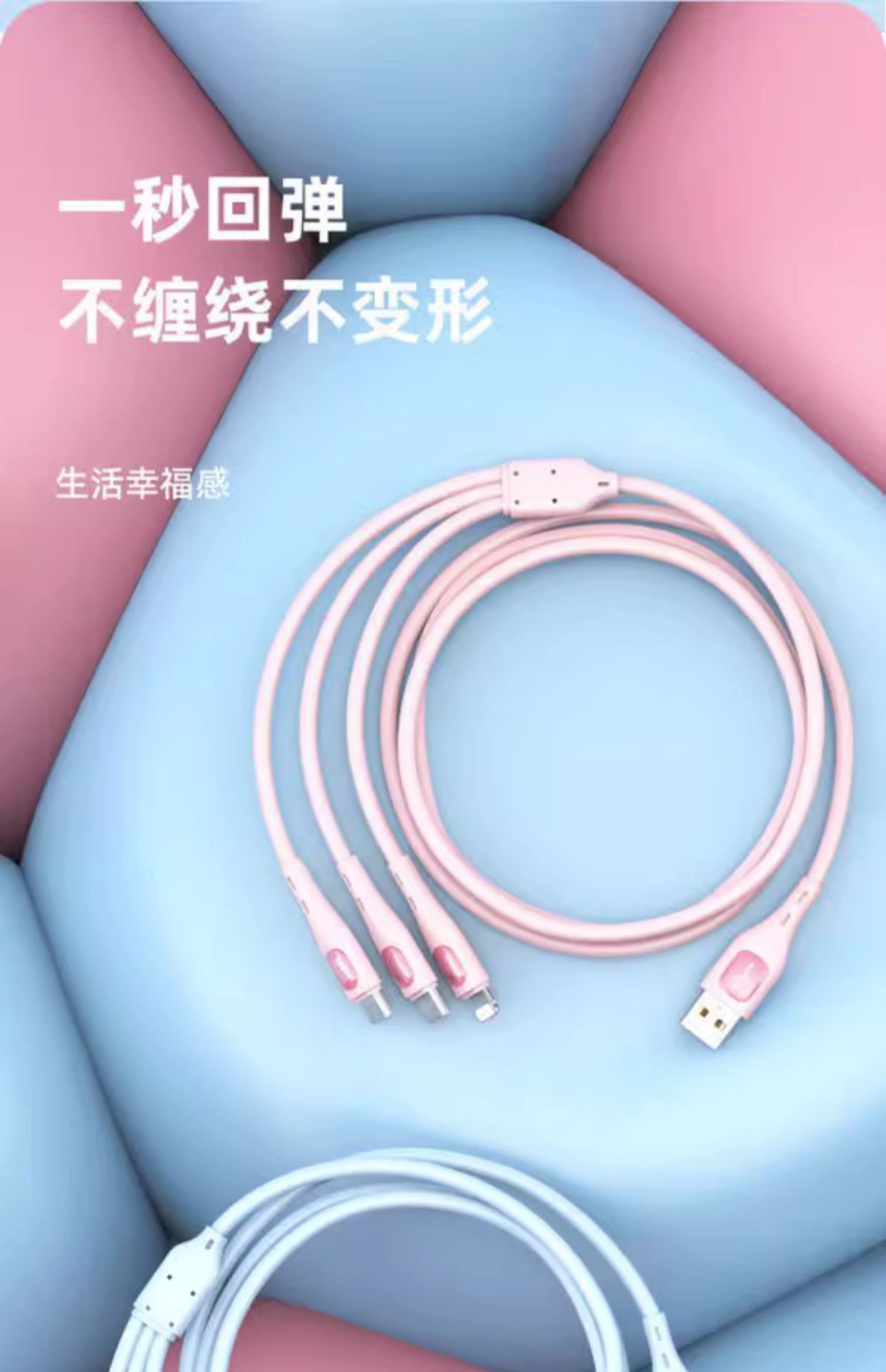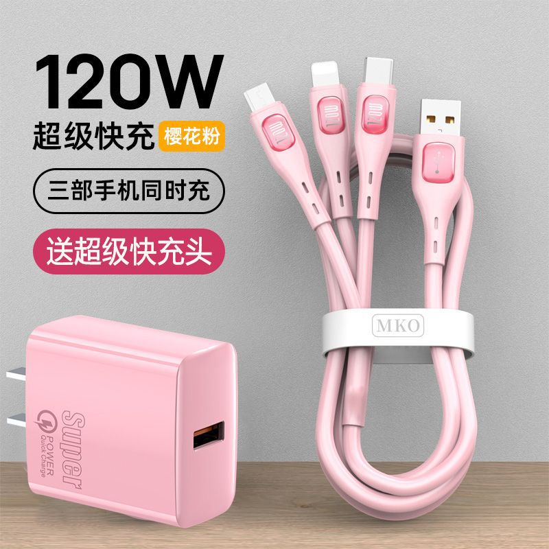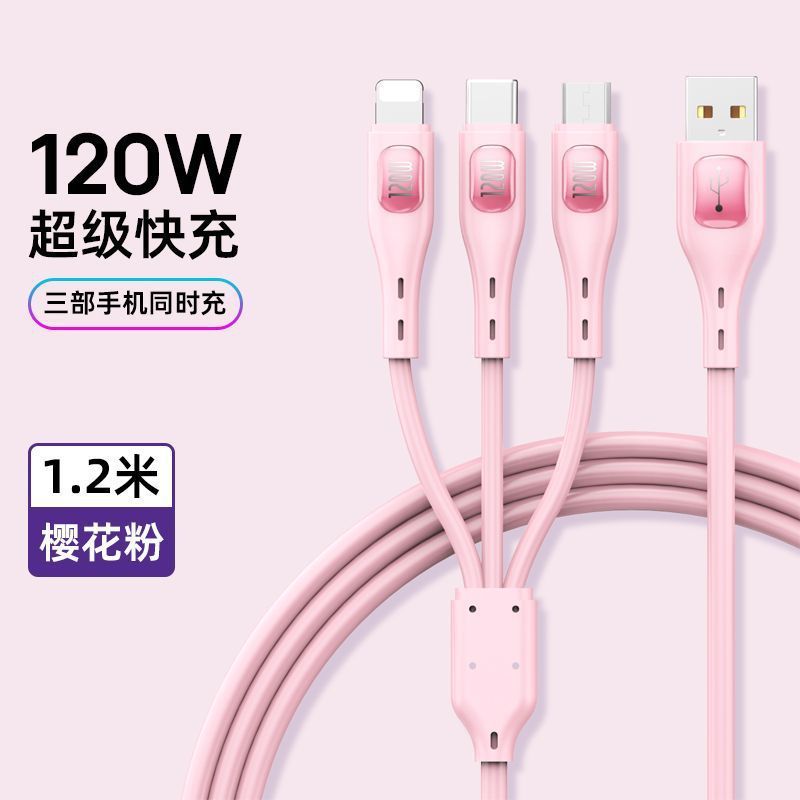 • 핑크 1.2m [3-in-1 + 단일 포트 고속 충전 헤드]