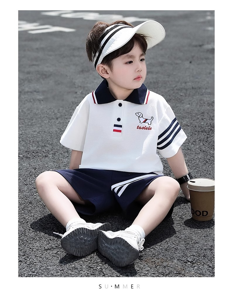 소년 여름 반팔 양복 2025 새로운 스타일 어린이 폴로 셔츠 옷 소년 여름 스포츠 투피스 세트스토어 가기