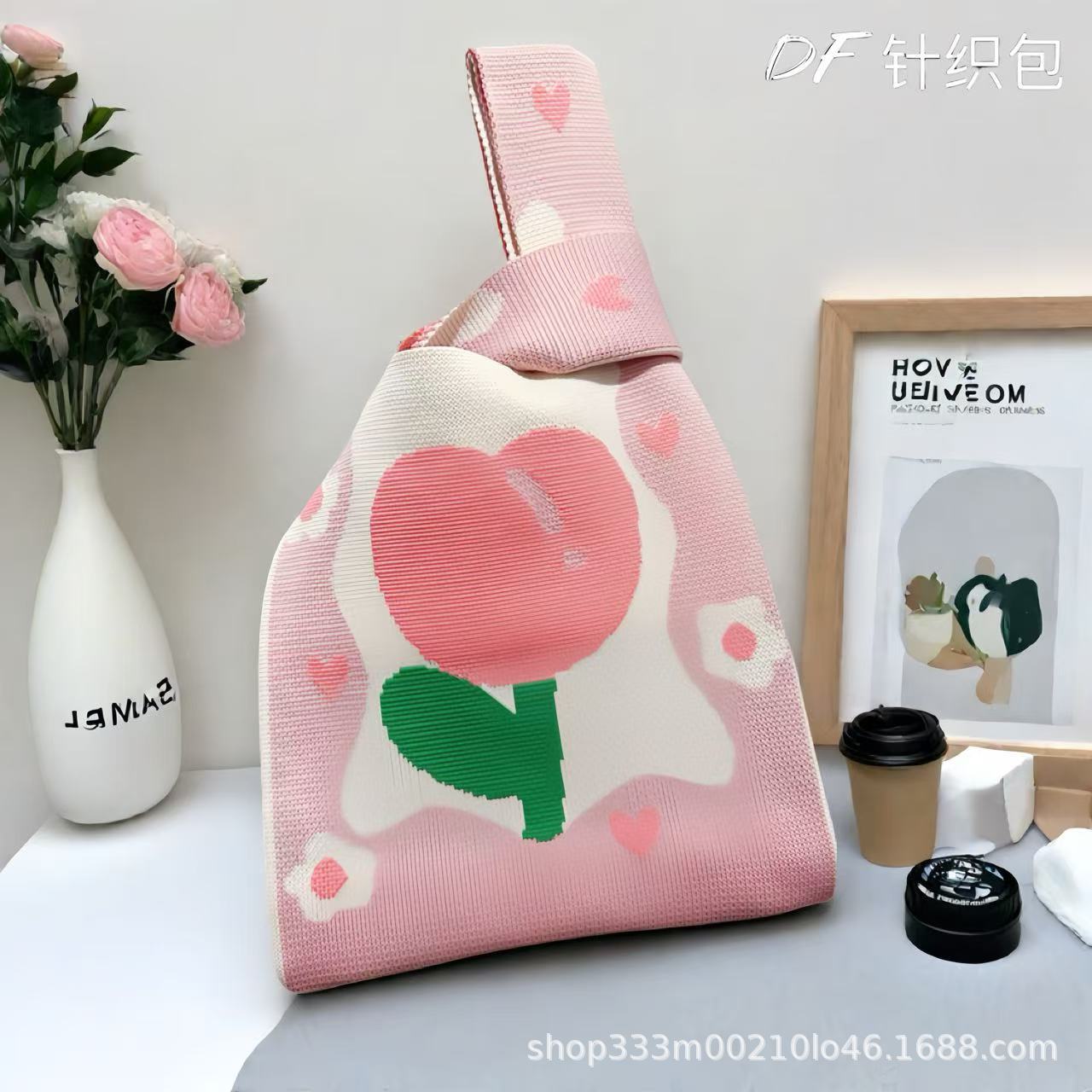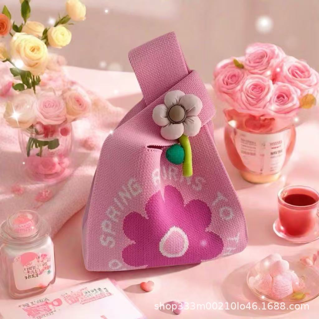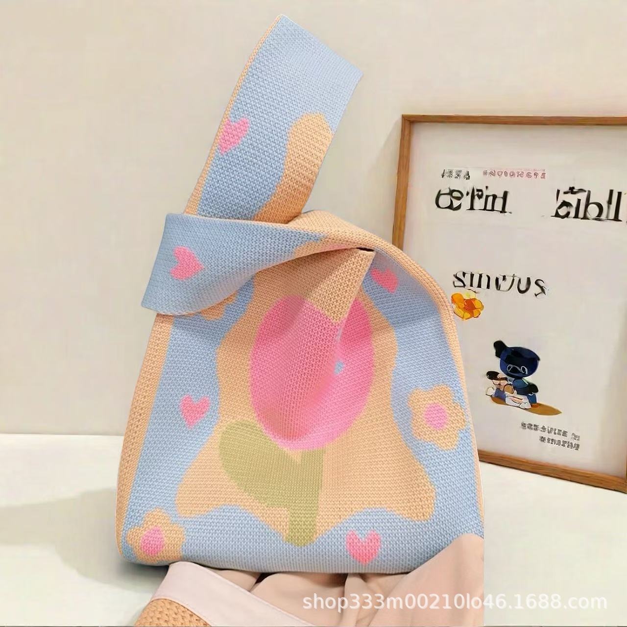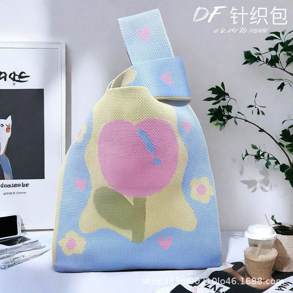 두꺼운 고중량 니트 다용도 핸드백 토트백 귀여운 만화 캐릭터 가방 휴대용 토트백 선물 가방스토어 가기
