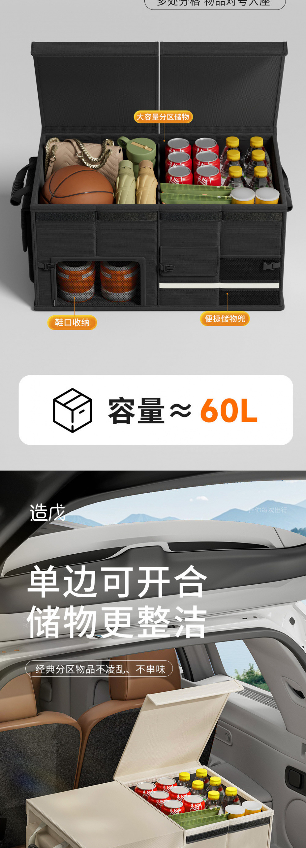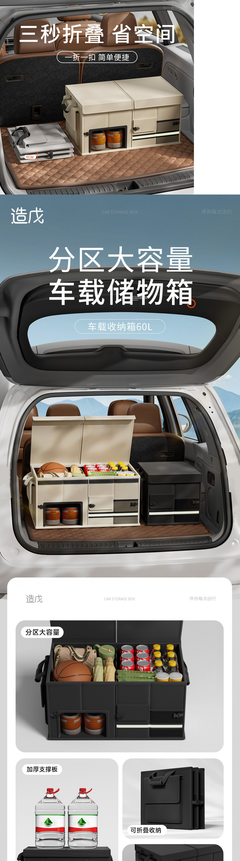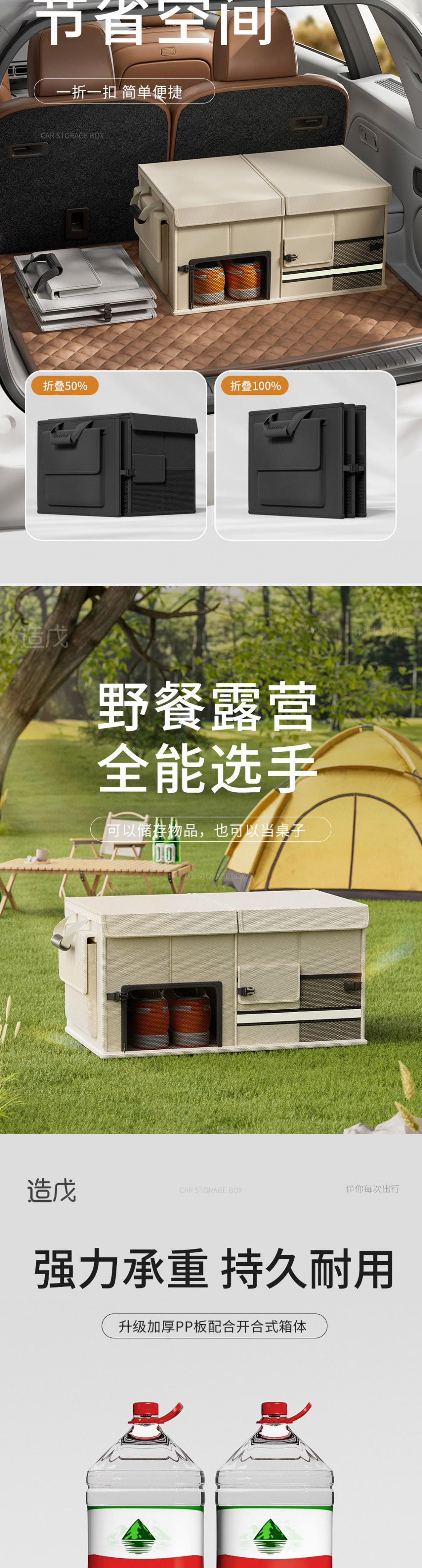 새로운 저장 상자 트렁크 자동차 실용적인 마무리 접이식 다기능 캠핑 저장 유물 자동차 저장 상자