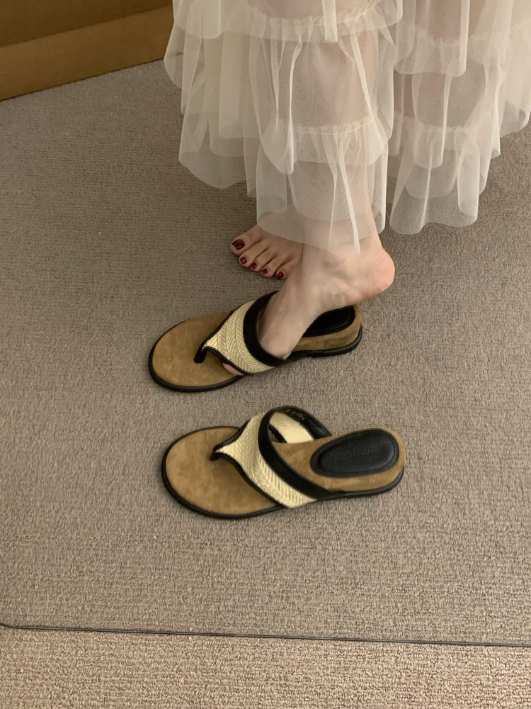 레트로 편안한 올 매치 웨지 통 슬리퍼 여성 여름 의상 로마 신발 예술적 모리 스타일 아름다운 비치 샌들