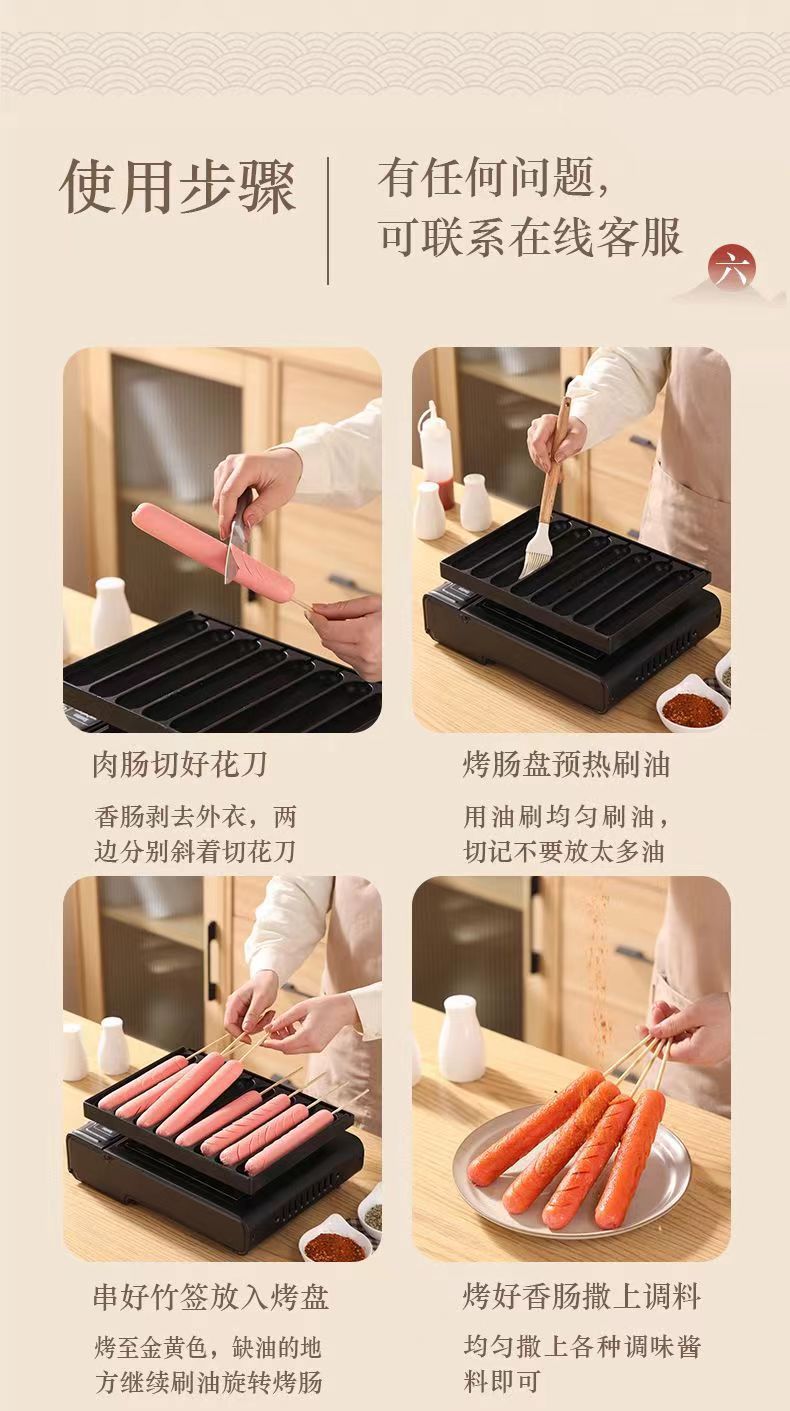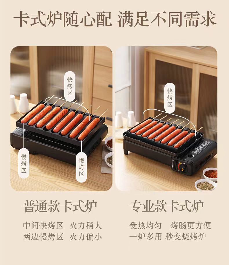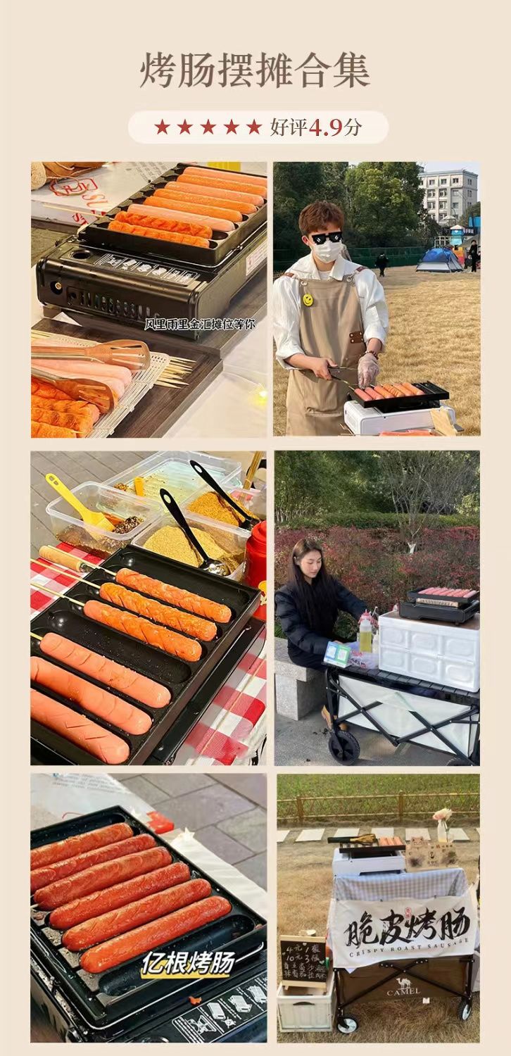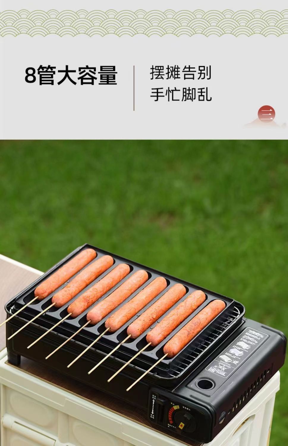 새로운 스타일의 소시지 구이 기계, 카세트 스토브, 상업용 핫도그, 골드 크리스피 스템치드 소시지, 가스 스톨 아티팩트