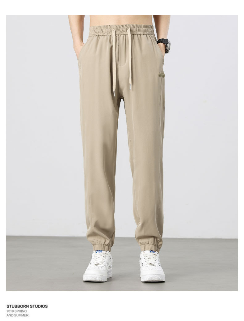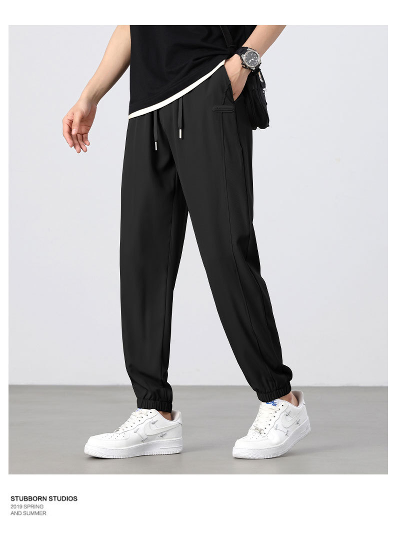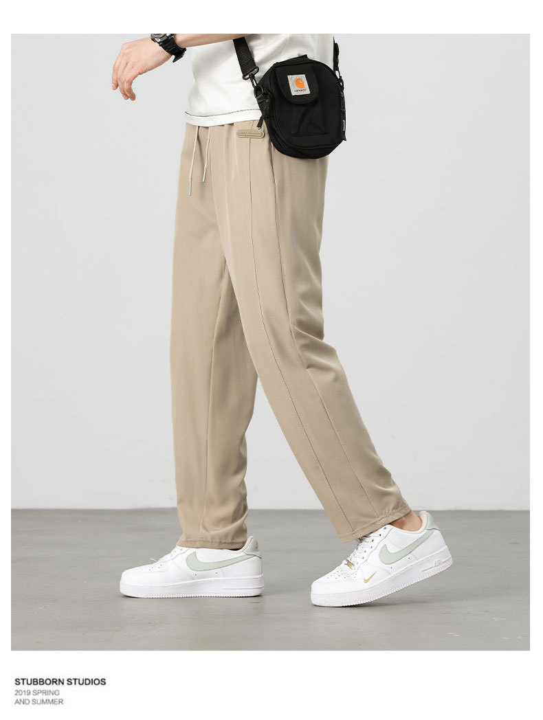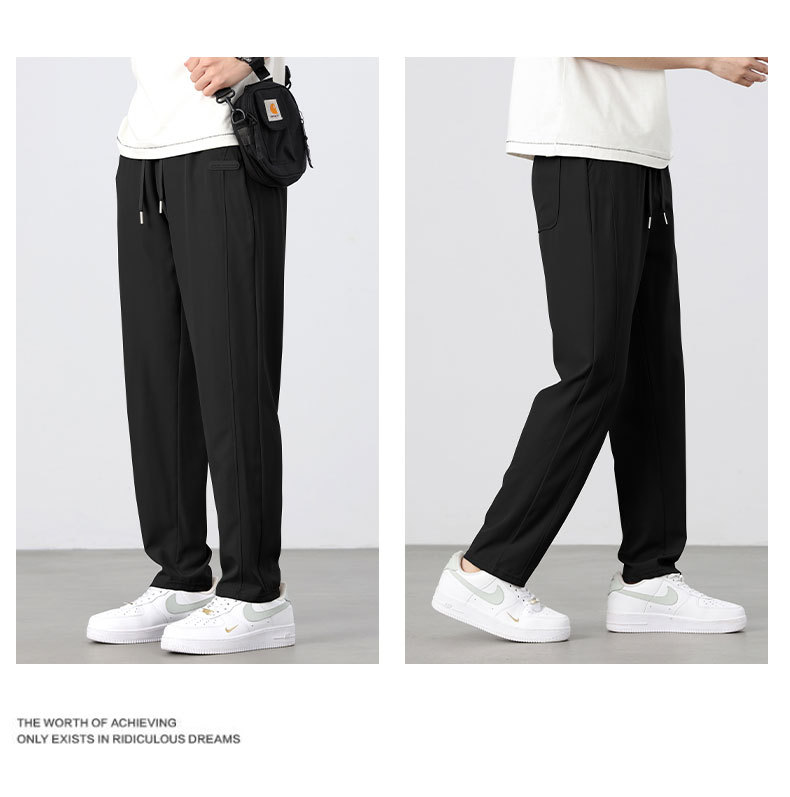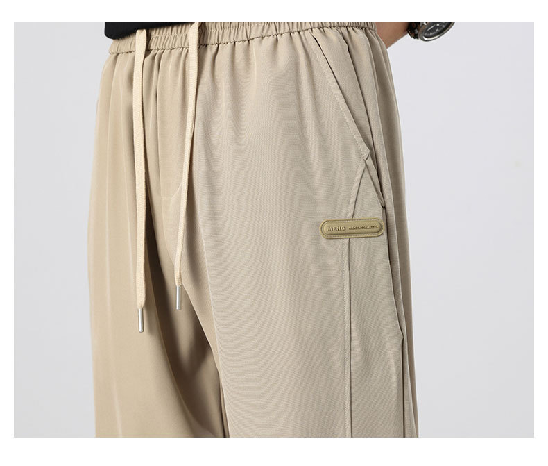 아이스 실크 바지 남성 여름 신작 신축성 속건 루즈 스트레이트 캐주얼 바지 대형 패션 다용도 에어컨 바지 남성