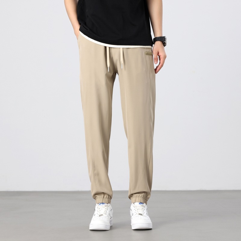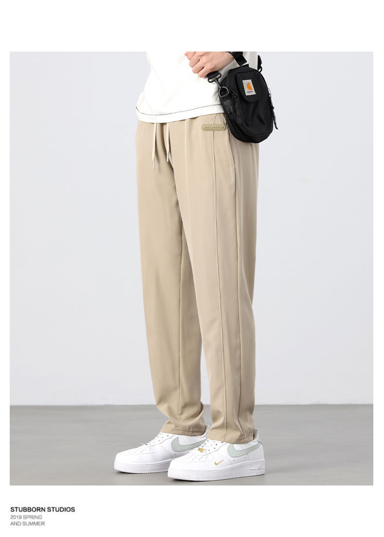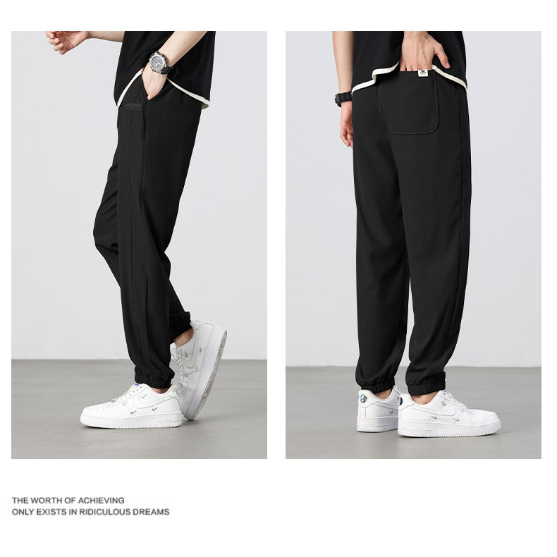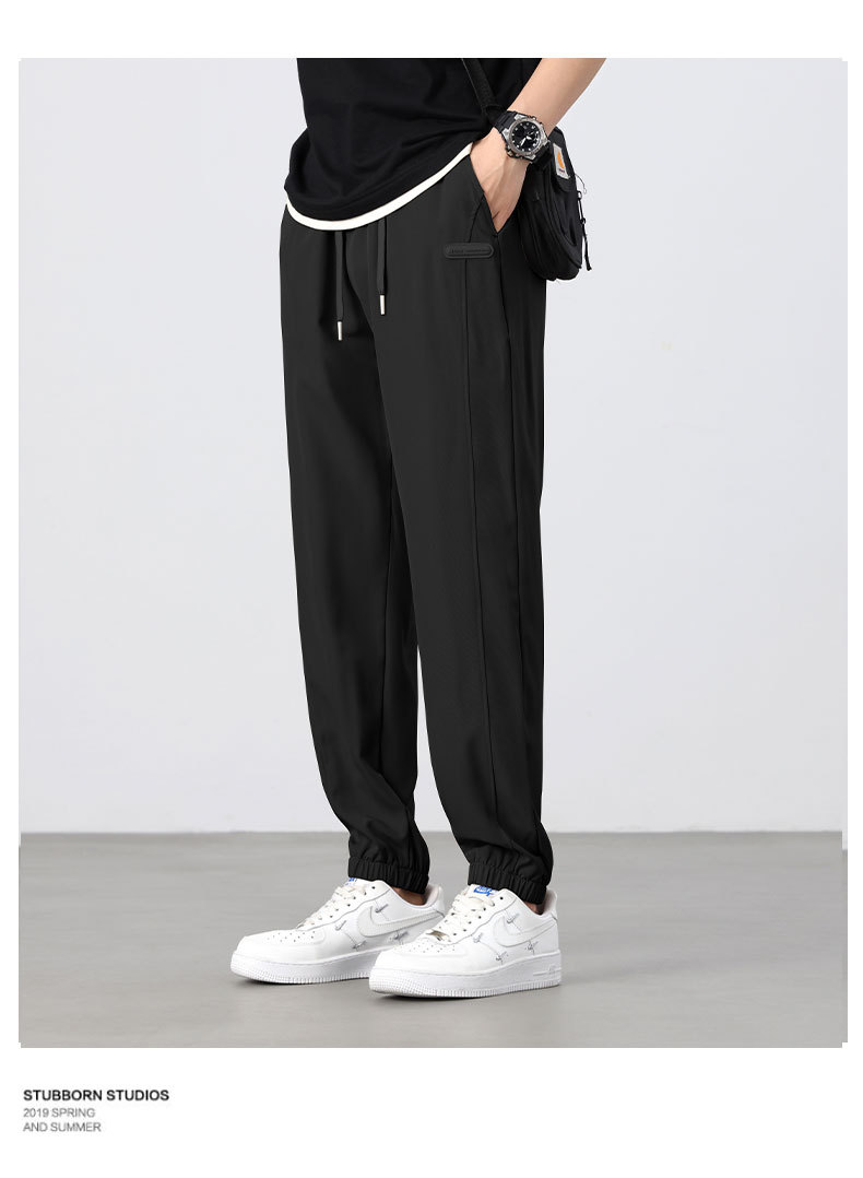 아이스 실크 바지 남성 여름 신작 신축성 속건 루즈 스트레이트 캐주얼 바지 대형 패션 다용도 에어컨 바지 남성
