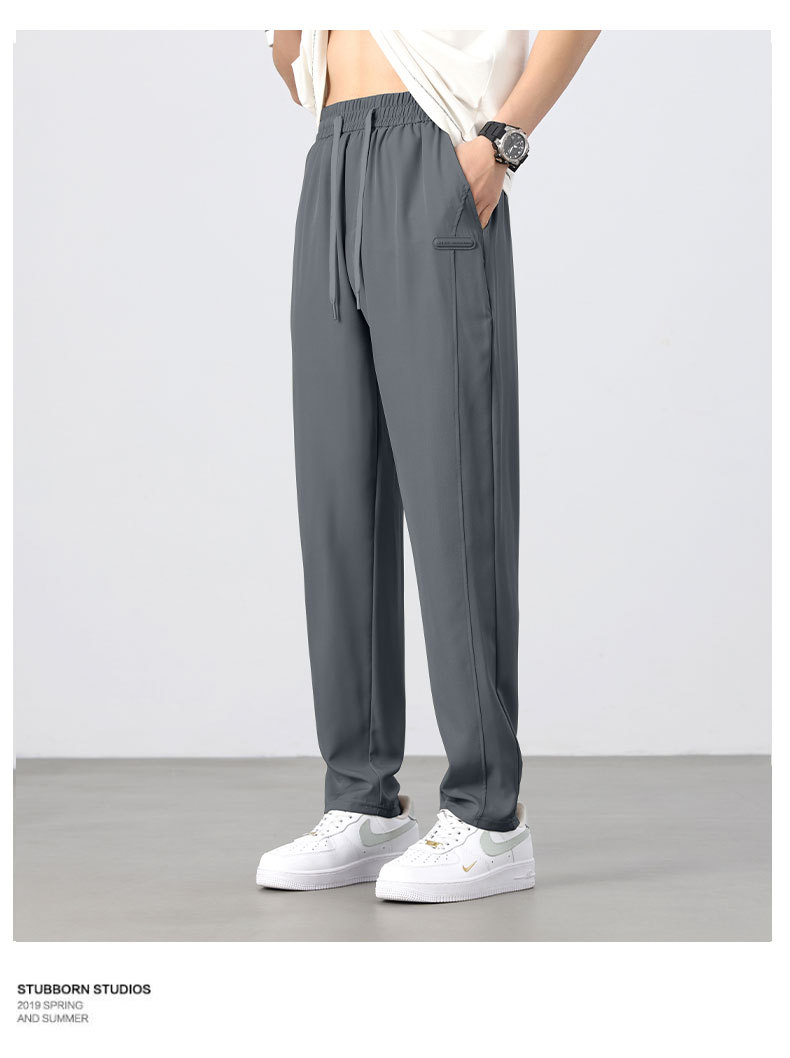 아이스 실크 바지 남성 여름 신작 신축성 속건 루즈 스트레이트 캐주얼 바지 대형 패션 다용도 에어컨 바지 남성스토어 가기