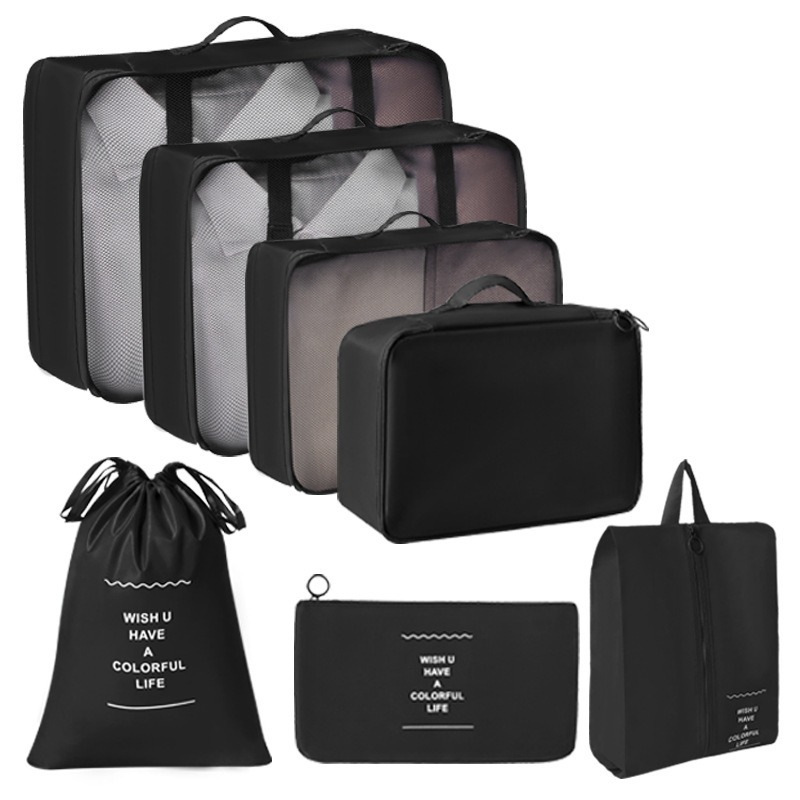 • 4칸으로 구성된 검정색 여행용 수납가방 6개 세트(대형 버전)