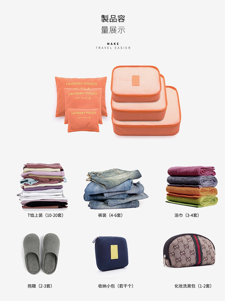 • 오렌지색 여행용 수납가방 4칸 6개 세트(대형)
