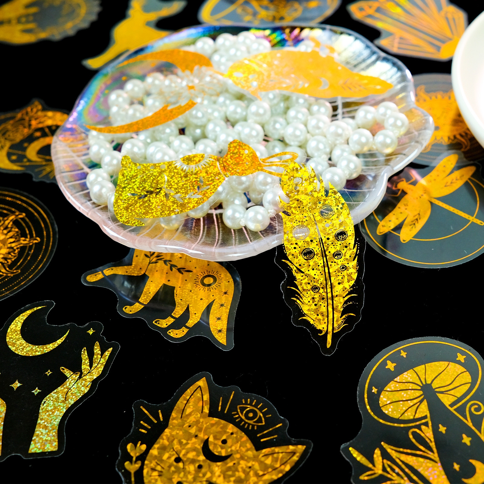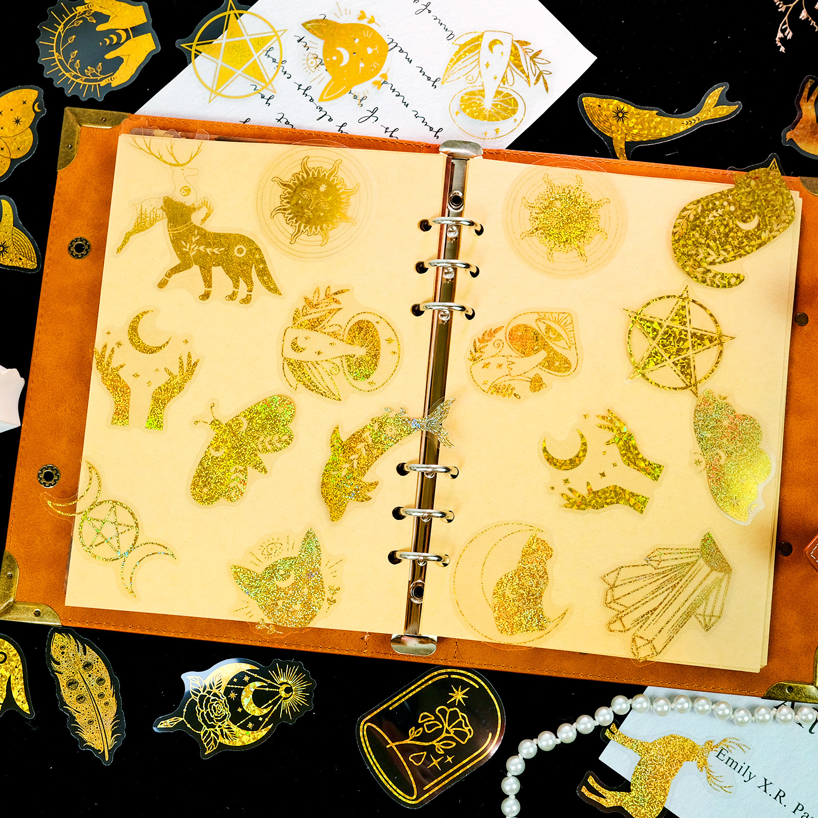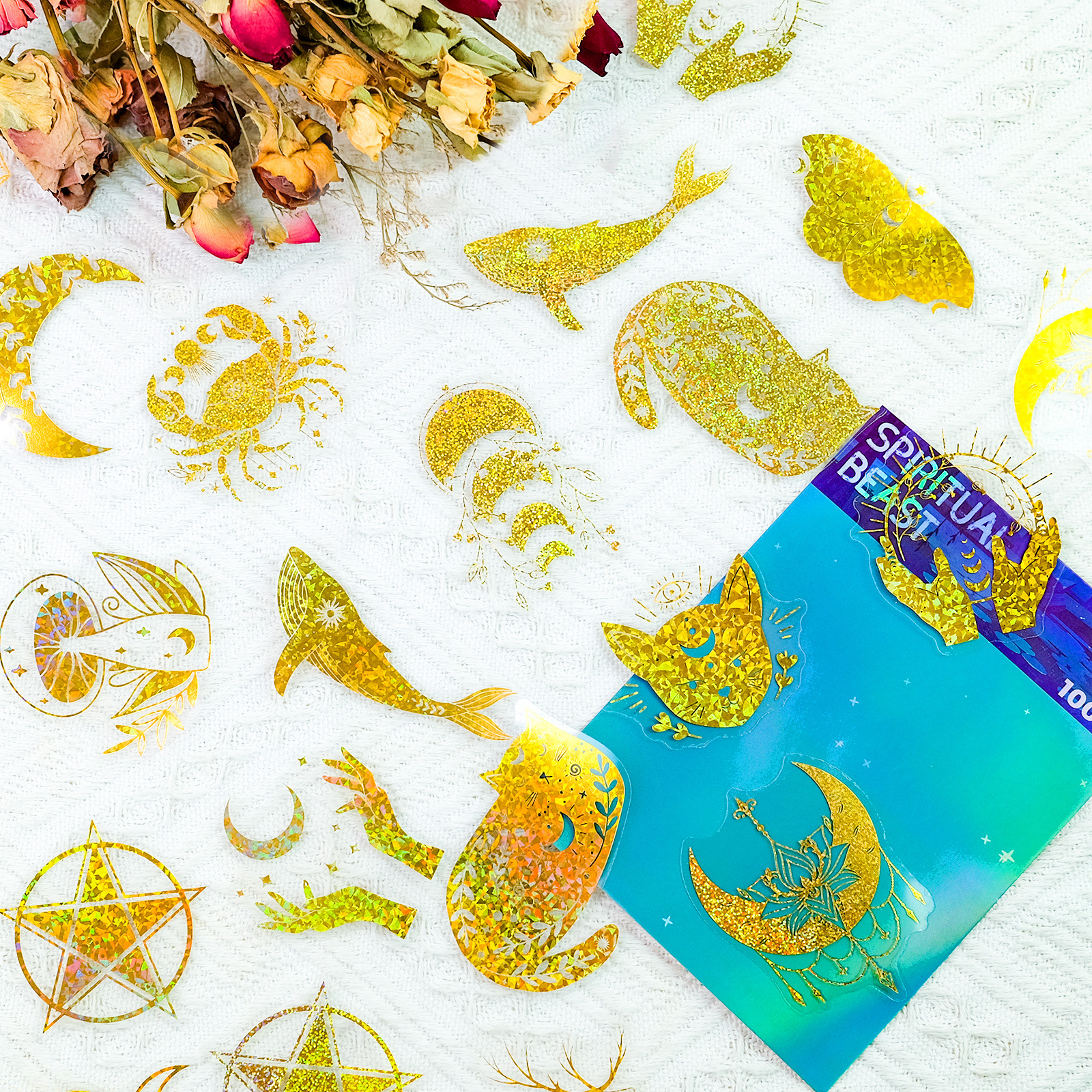 국경 베스트셀러 100 PET 핫 골드 레이저 스티커 종이 가방 복고풍 동물 마술 시리즈 손 계정 DIY 마운트