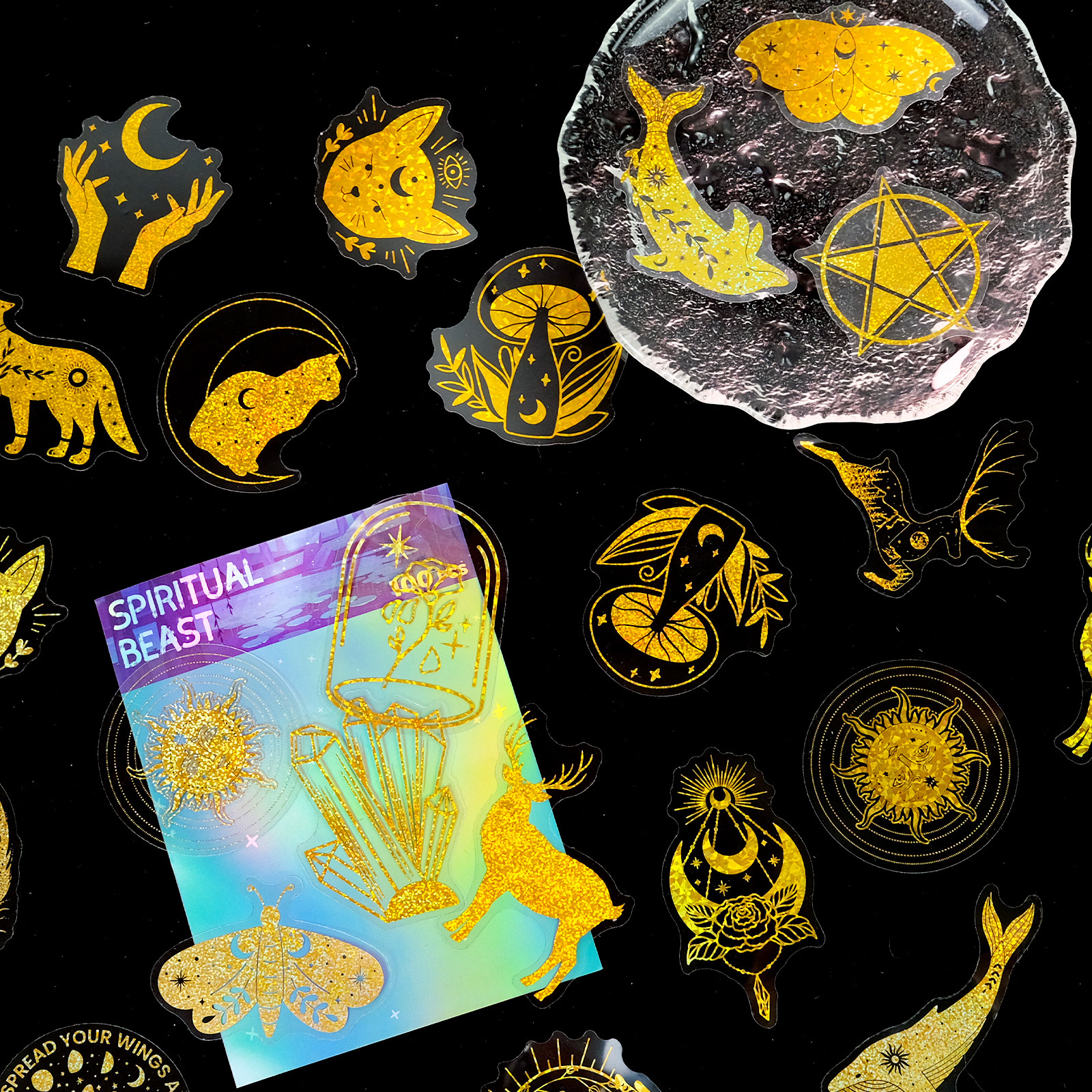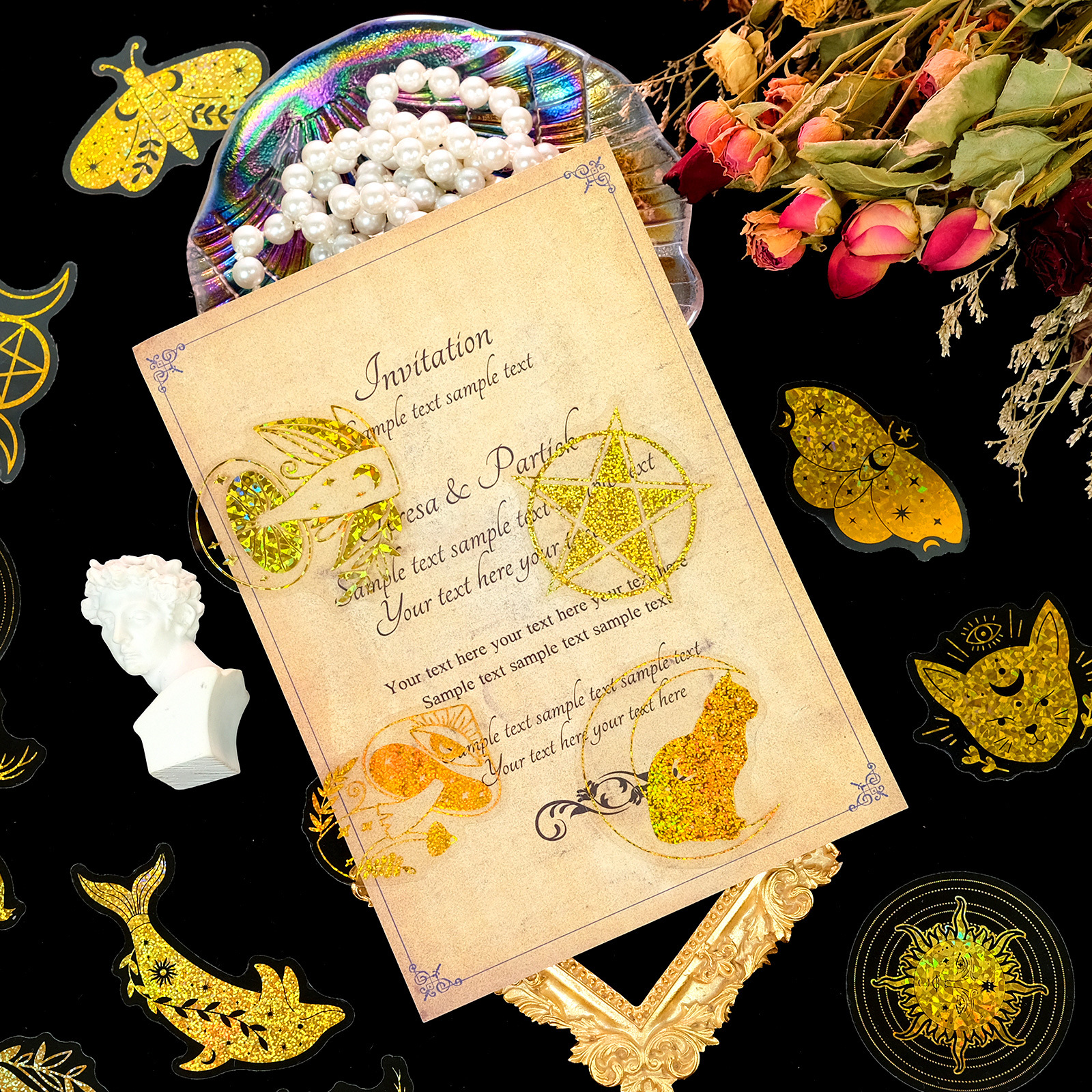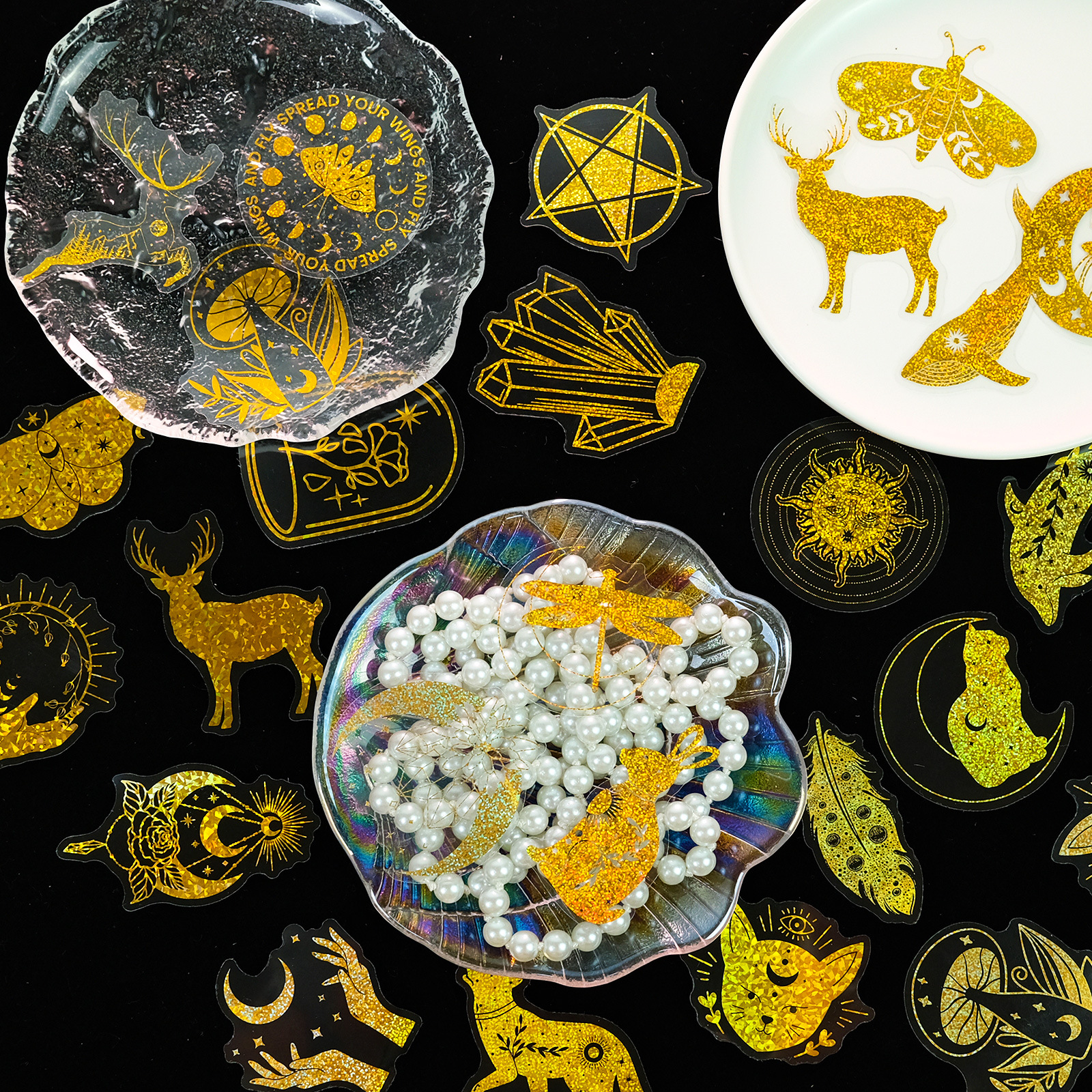 국경 베스트셀러 100 PET 핫 골드 레이저 스티커 종이 가방 복고풍 동물 마술 시리즈 손 계정 DIY 마운트