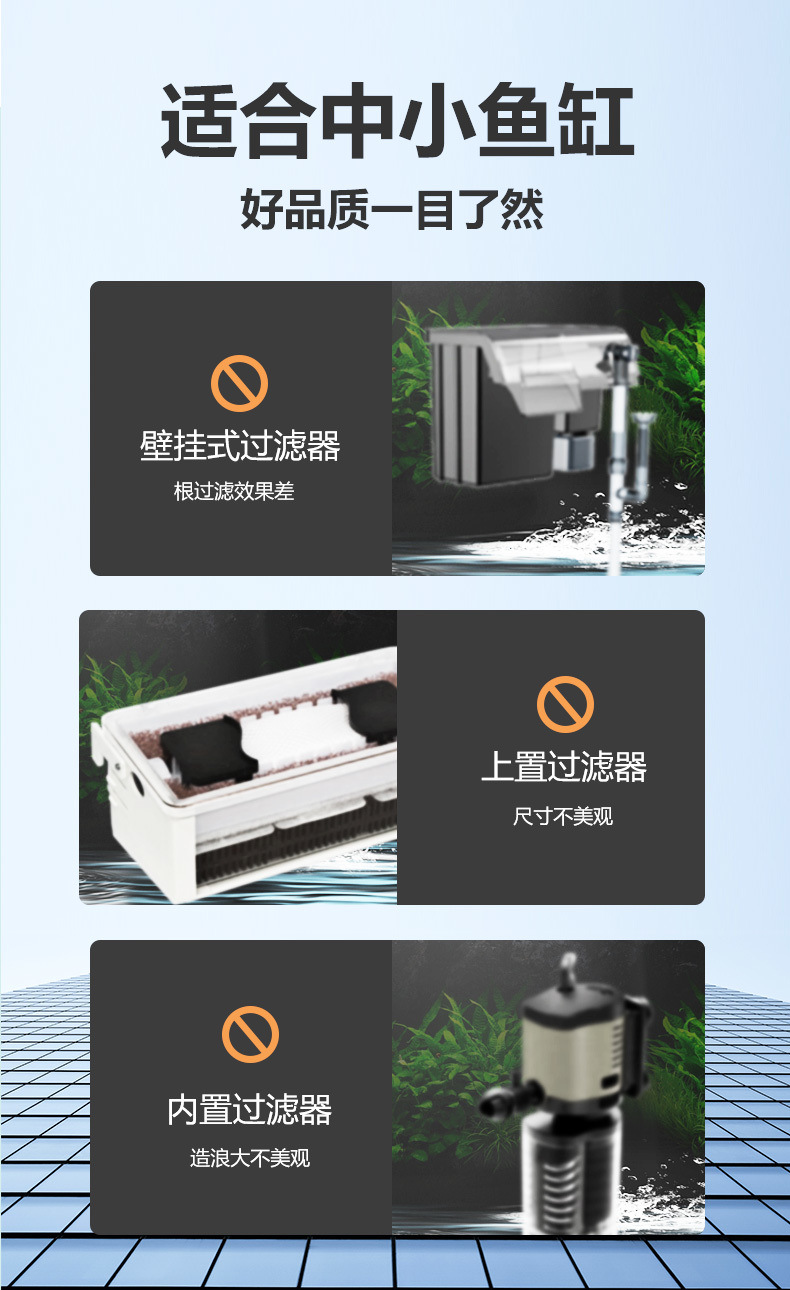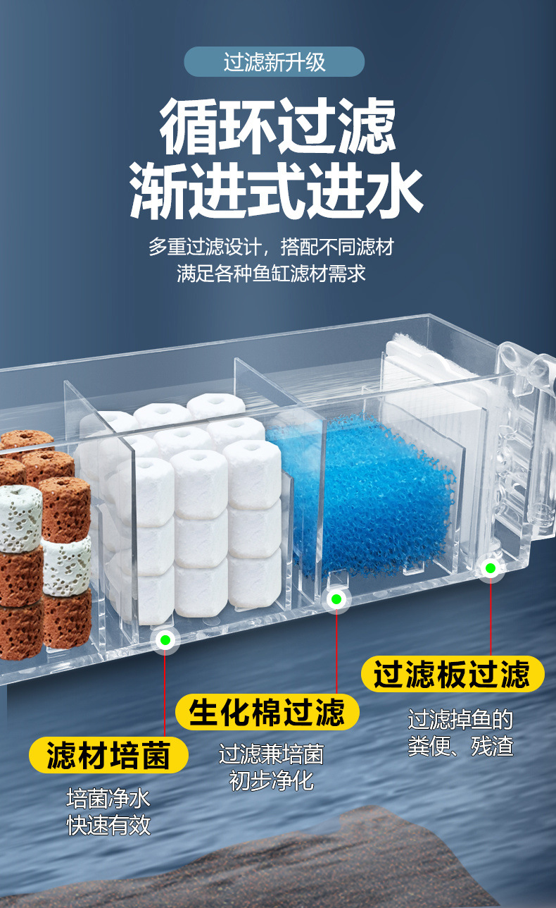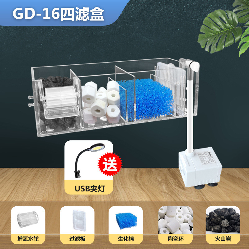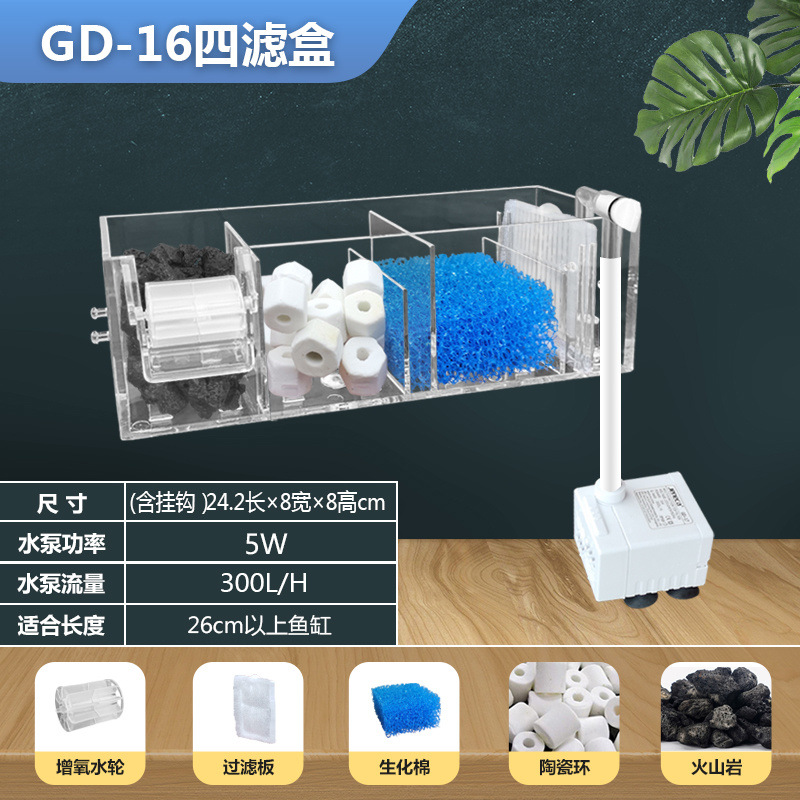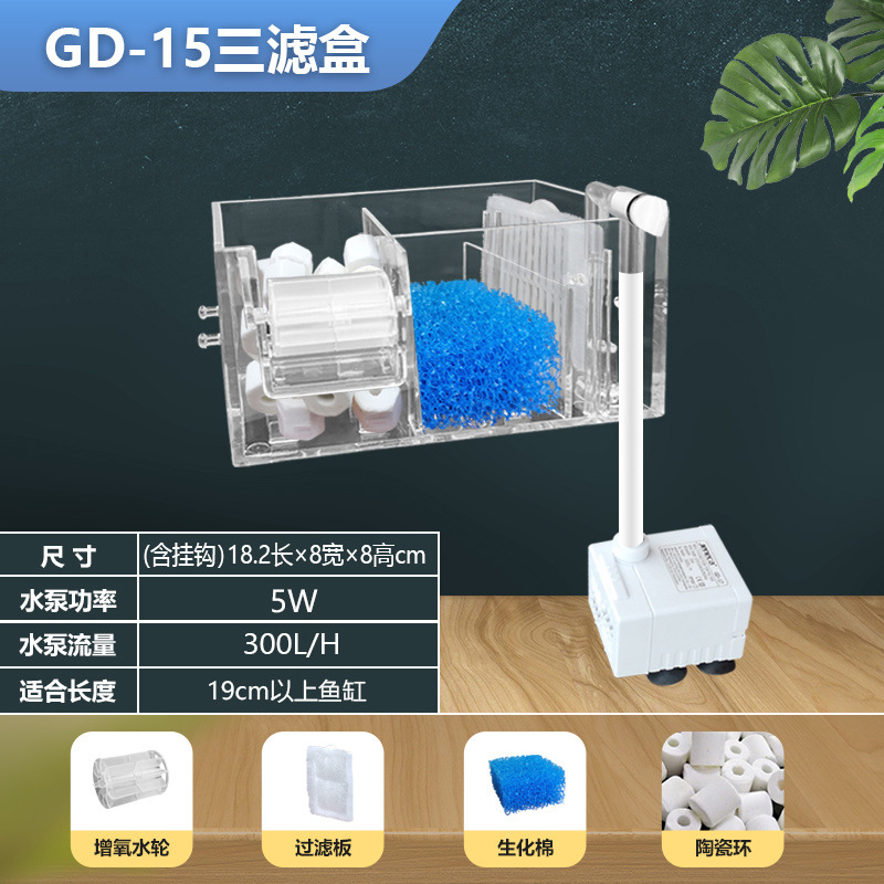 벽에 장착 된 3 대 1 필터 어항 순환 시스템 잠수정 펌프 펌핑 산소 증가 음소거 필터 장비