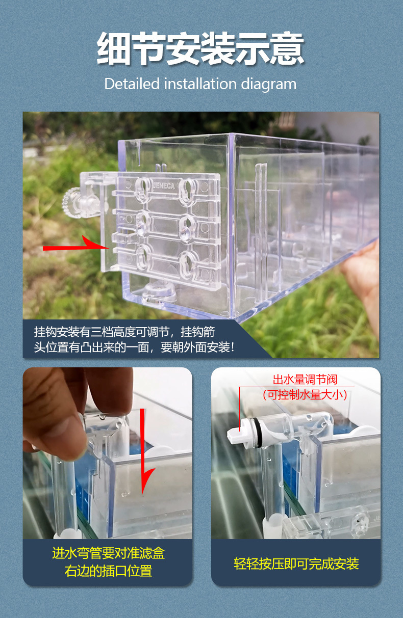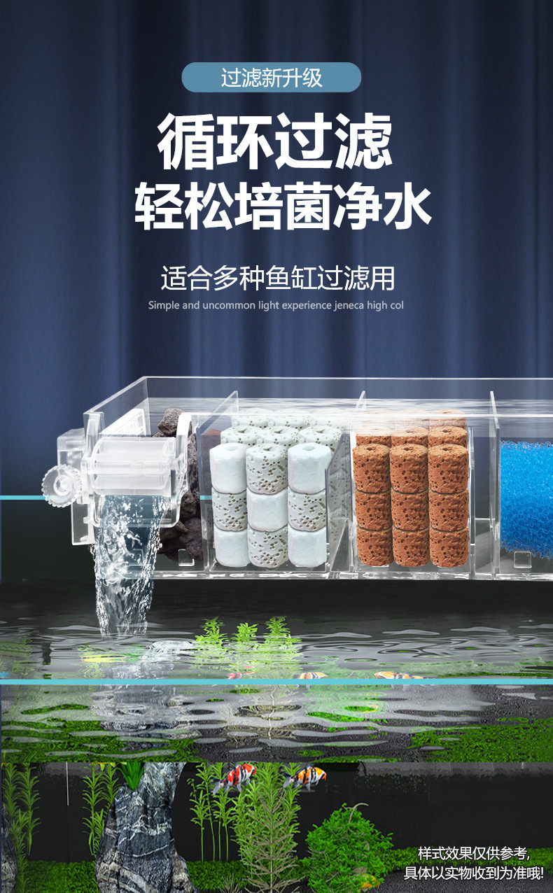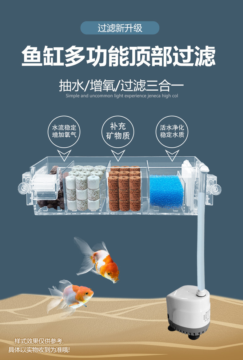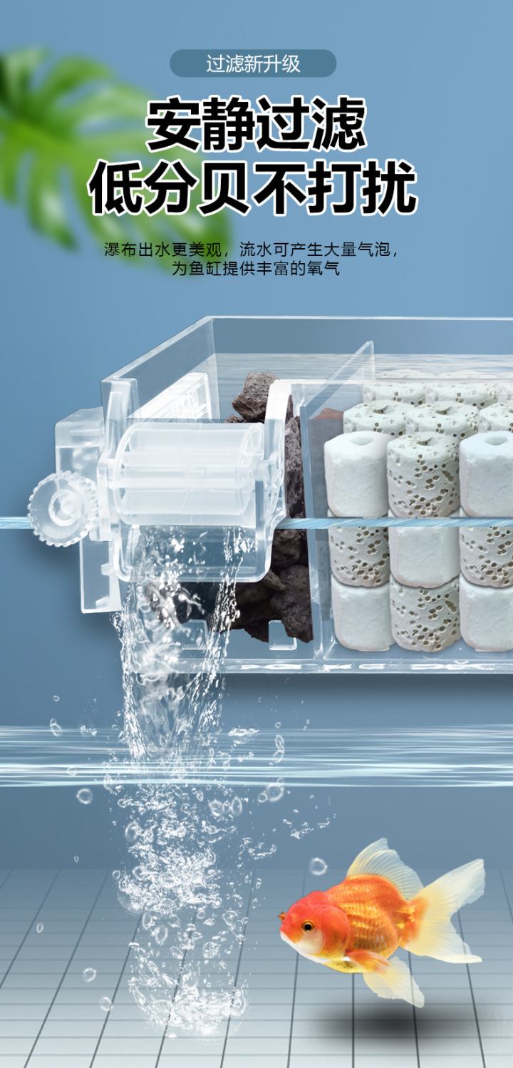 벽에 장착 된 3 대 1 필터 어항 순환 시스템 잠수정 펌프 펌핑 산소 증가 음소거 필터 장비