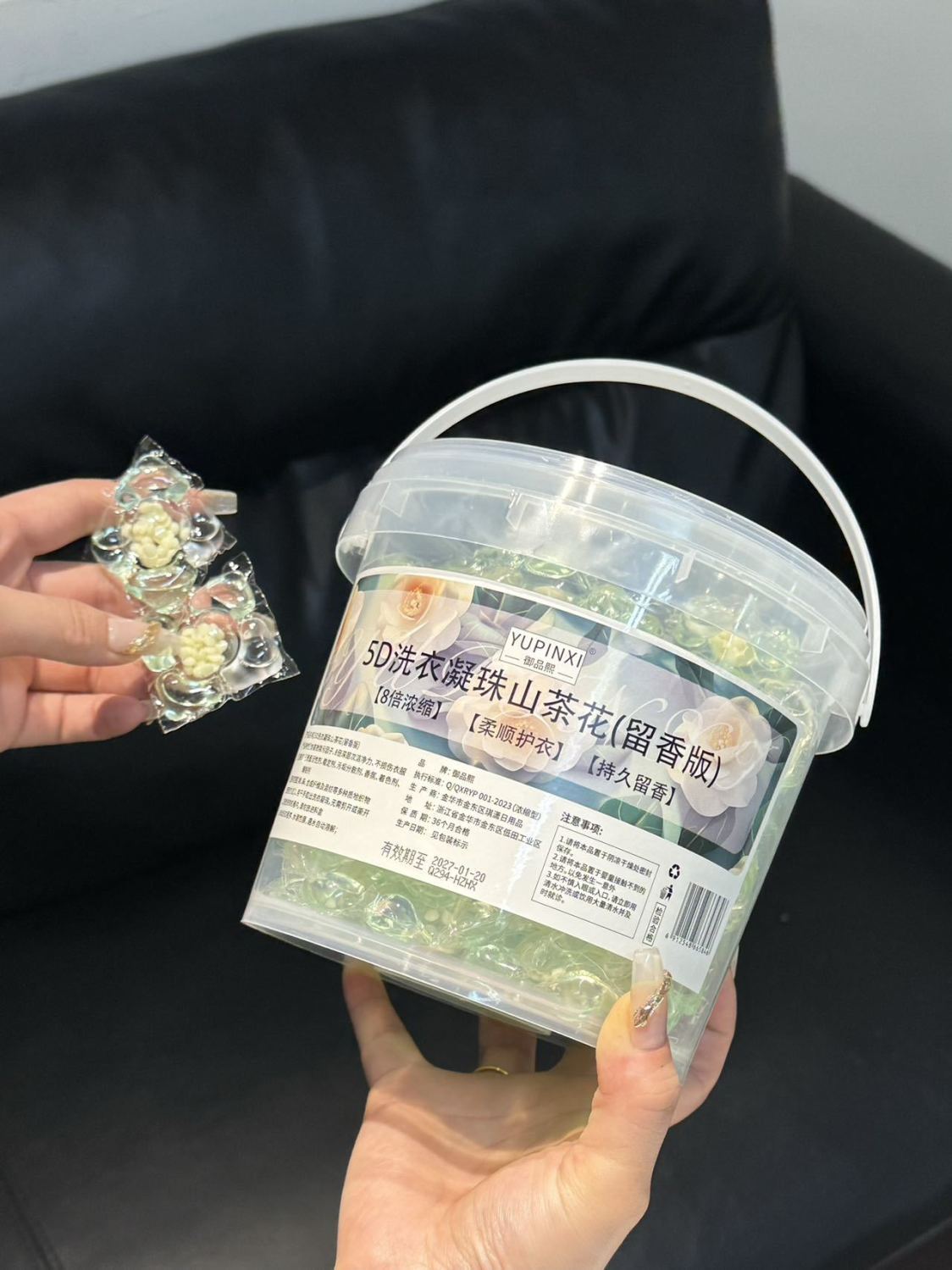 카멜리아 세탁 비즈 버킷 5-in-1 오래 지속되는 향기 부드러운 세탁 볼 강력한 오염 제거 농축 세탁 세제