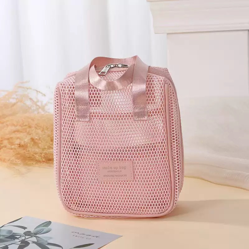25 년 폭발성 중공 메쉬 화장품 가방 대용량 휴대용 다기능 저장 가방 휴대용 여행 클라우드 스토리지
