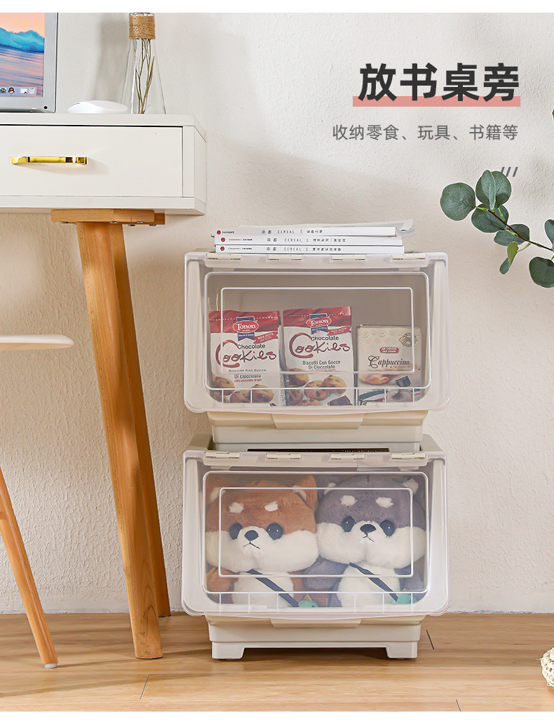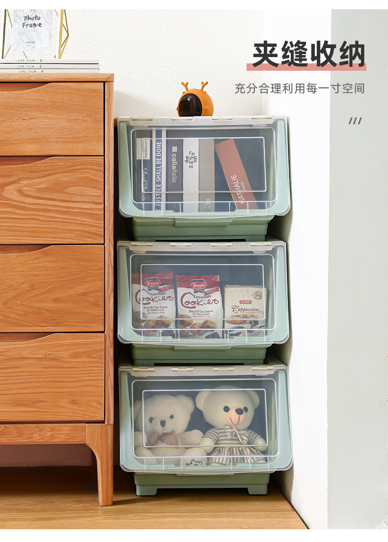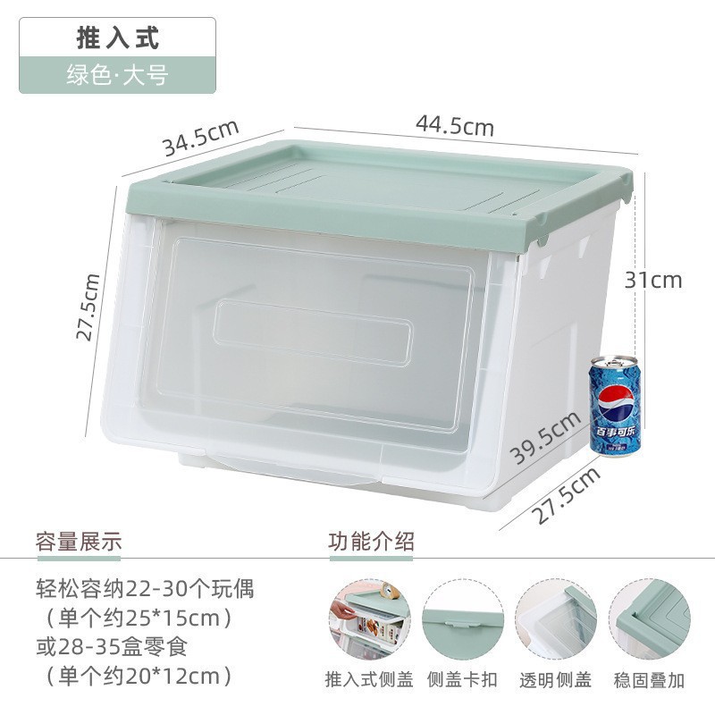 전면 개방형 플립 커버 투명 정리 상자 거실 주방 스낵 모바일 보관 상자 어린이 보관 장난감 보관 상자