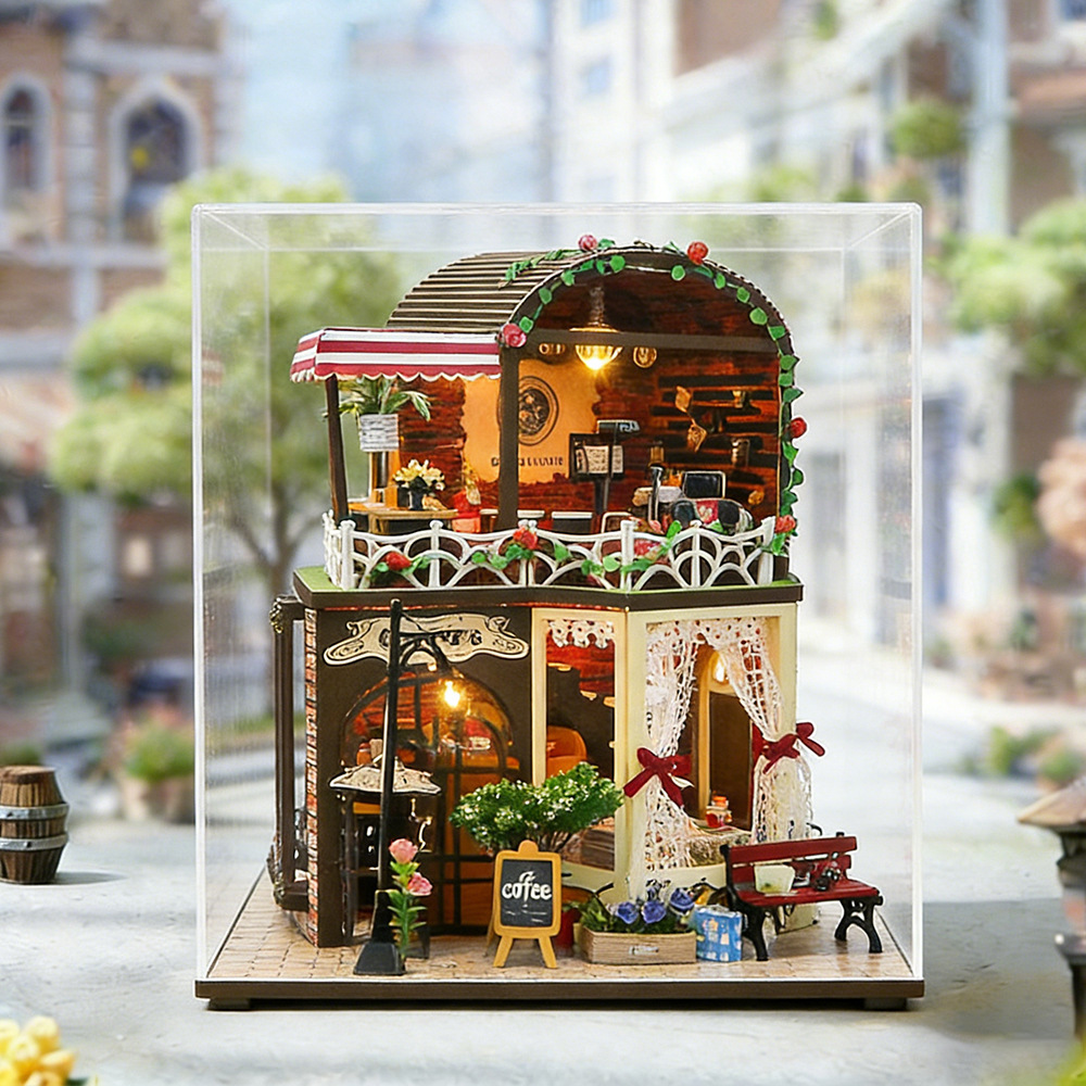 DIY 수제 이층 커피숍 건축 모형 집, 국경을 넘는 조립식 목조 주택 장식품, 미니어처 하우스, 나무 장난감스토어 가기