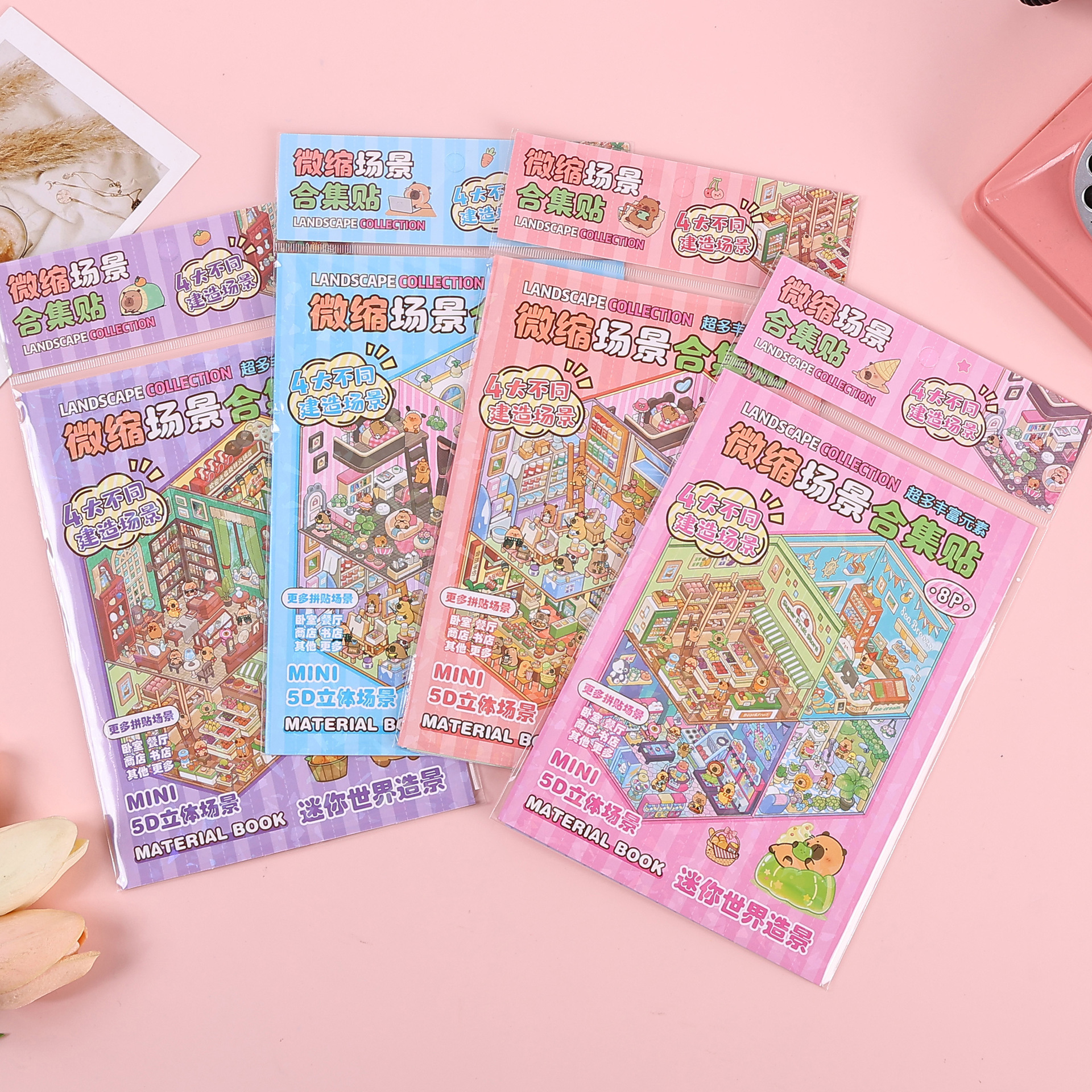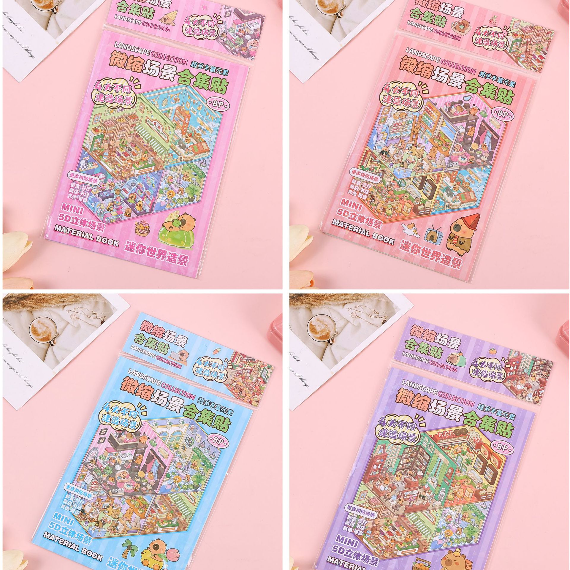 새로운 산리오 미니어처 장면 컬렉션 스티커 창조적 인 DIY 스티커 Cabibala 5D 입체 장면 조용한 책