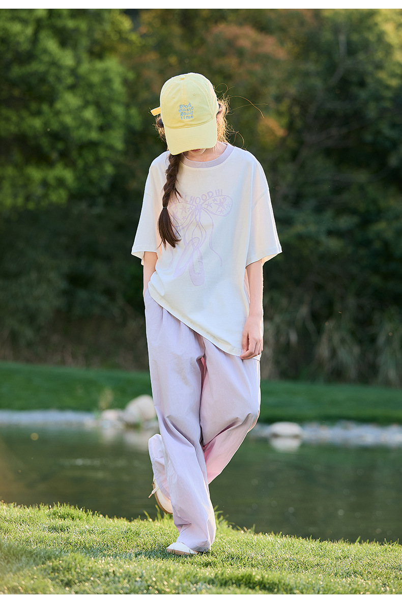 여아 루즈 프린트 티셔츠 여름 얇은 중대형 아동 한국식 서양식 순면 아동 반팔 데일리 다용도스토어 가기
