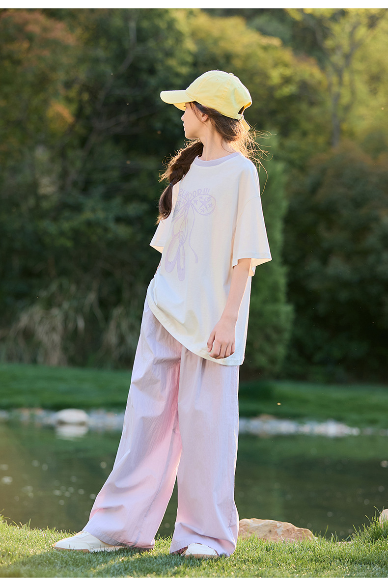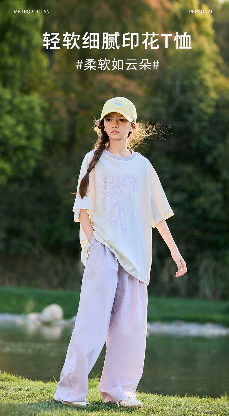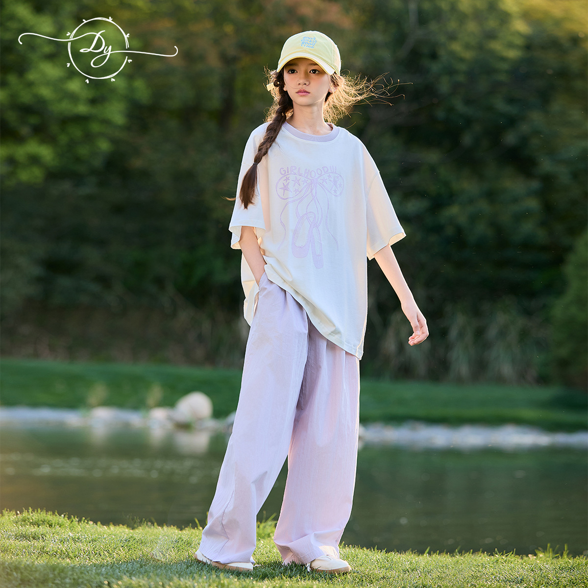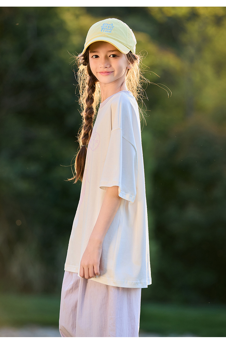 여아 루즈 프린트 티셔츠 여름 얇은 중대형 아동 한국식 서양식 순면 아동 반팔 데일리 다용도
