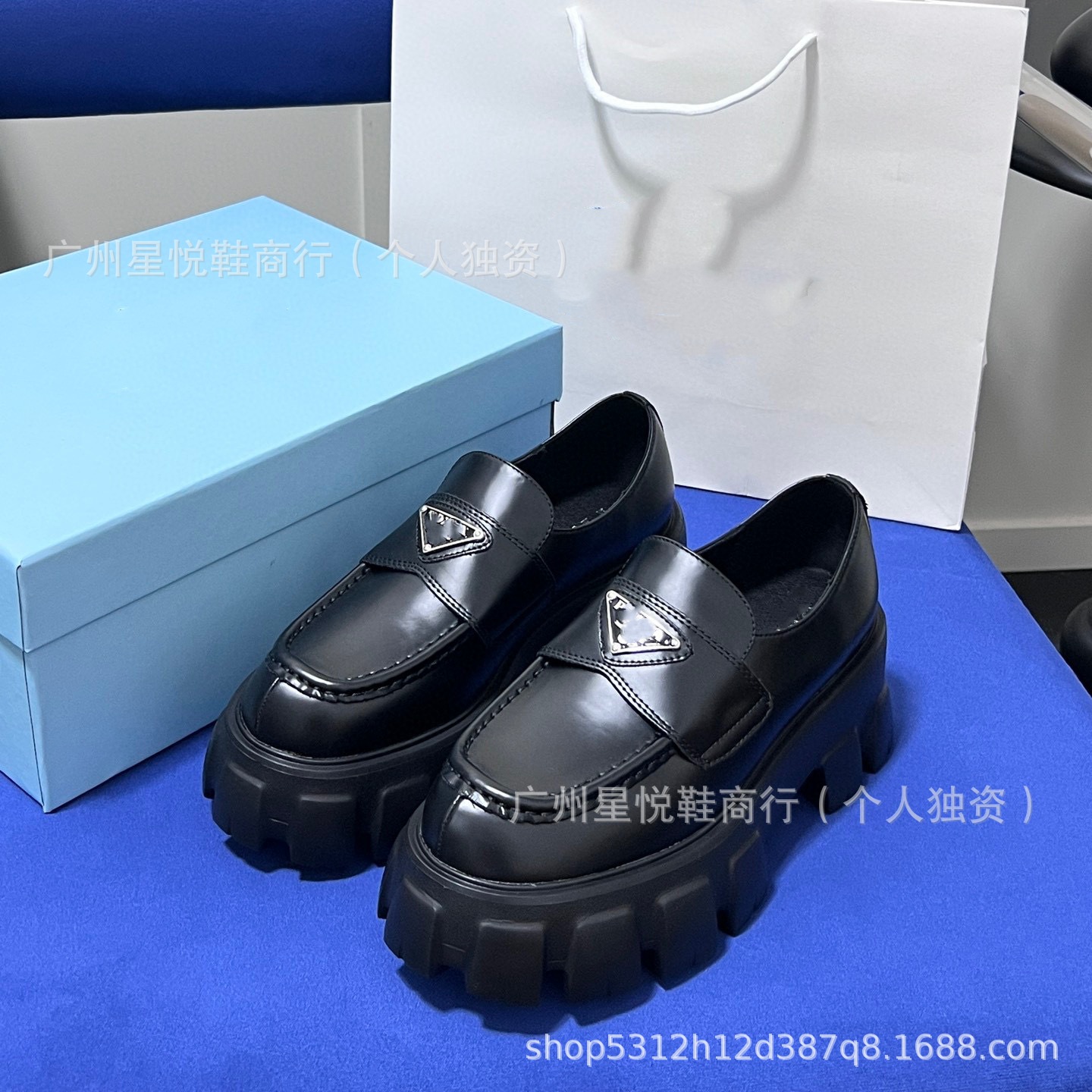 2025 새로운 금속 삼각형 로고 두꺼운 밑창 작은 가죽 신발 여성 영국 스타일 복고풍 플랫폼 두꺼운 밑창 로퍼스토어 가기