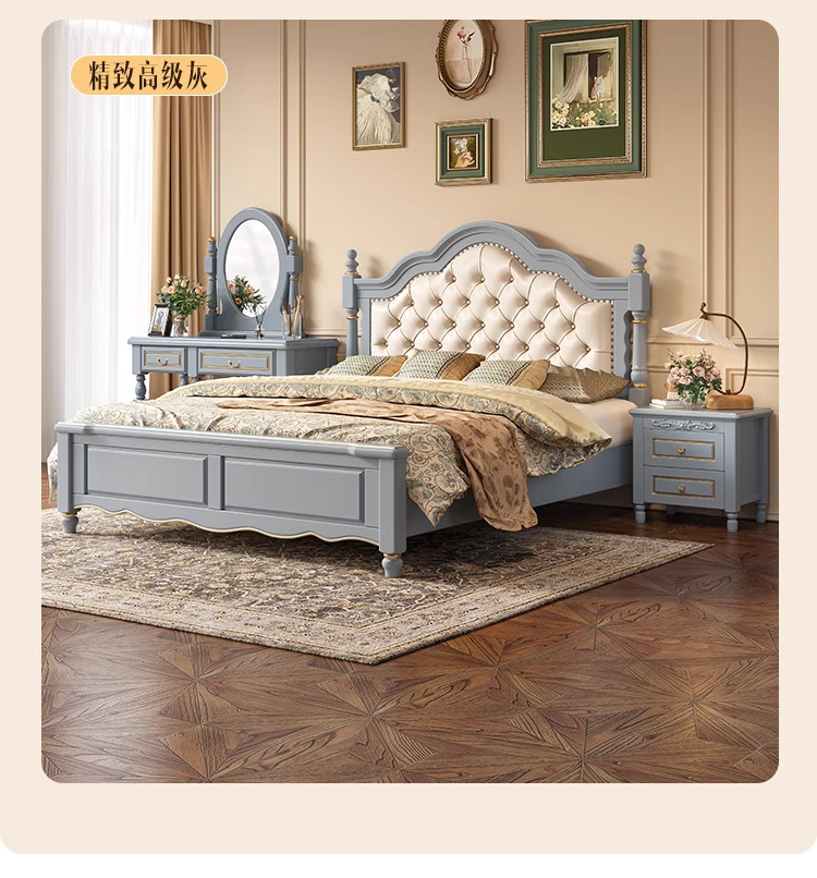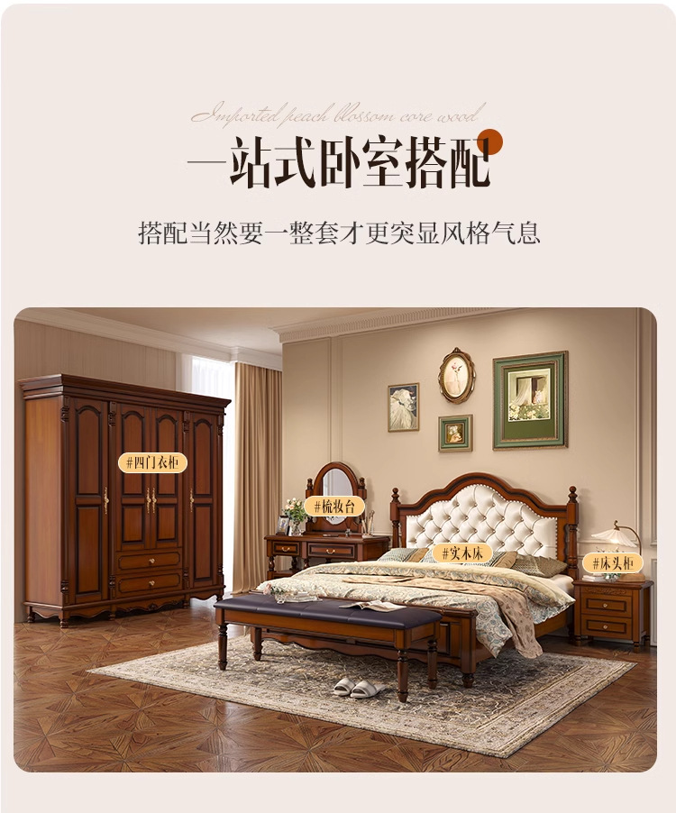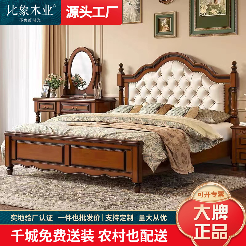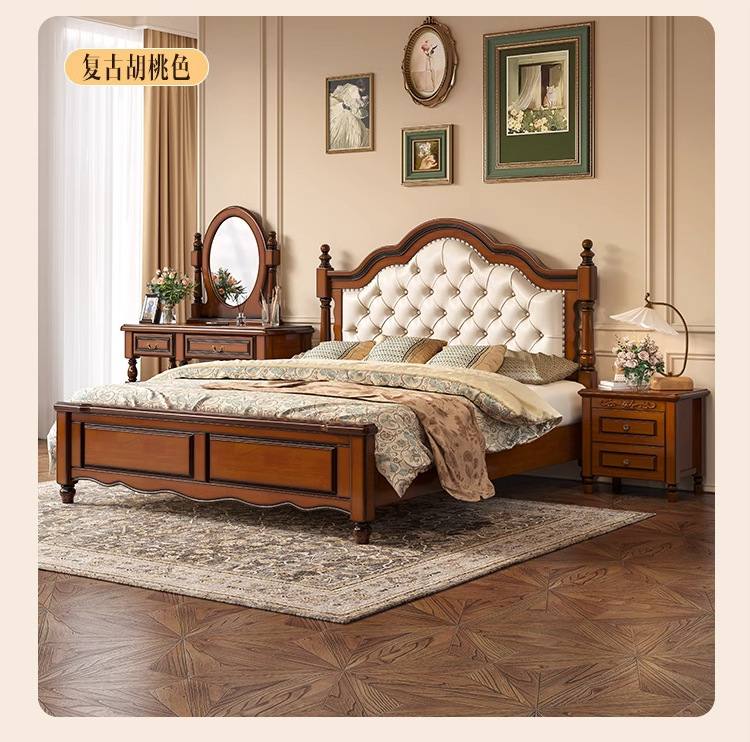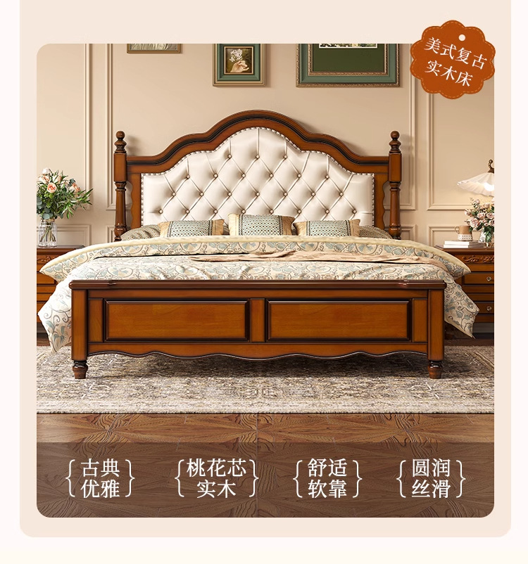 아메리칸 라이트 럭셔리 원목 침대, 마스터 침실, 고급스럽고 분위기 있는 복고풍 더블 침대, 모던하고 심플한 가죽 부드러운 등받이 수납 웨딩 침대스토어 가기