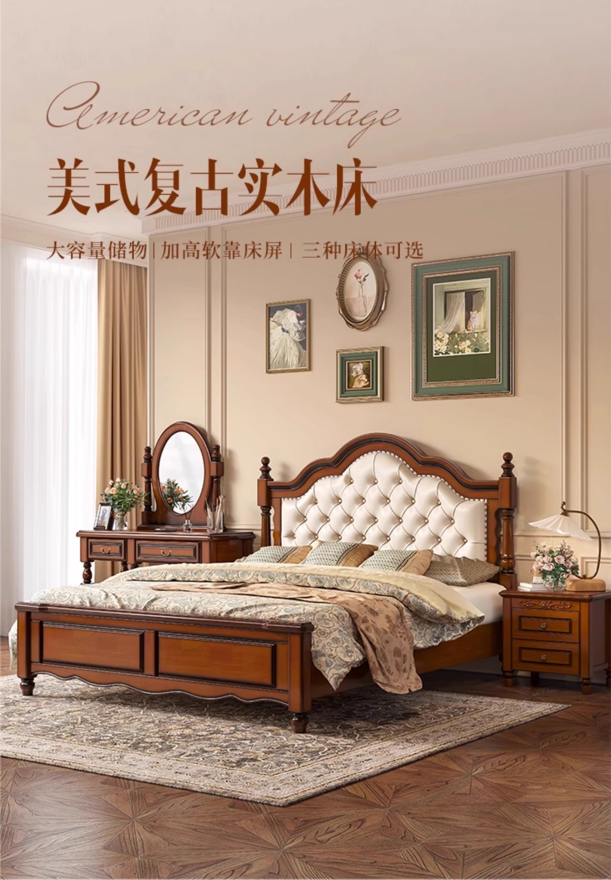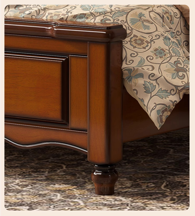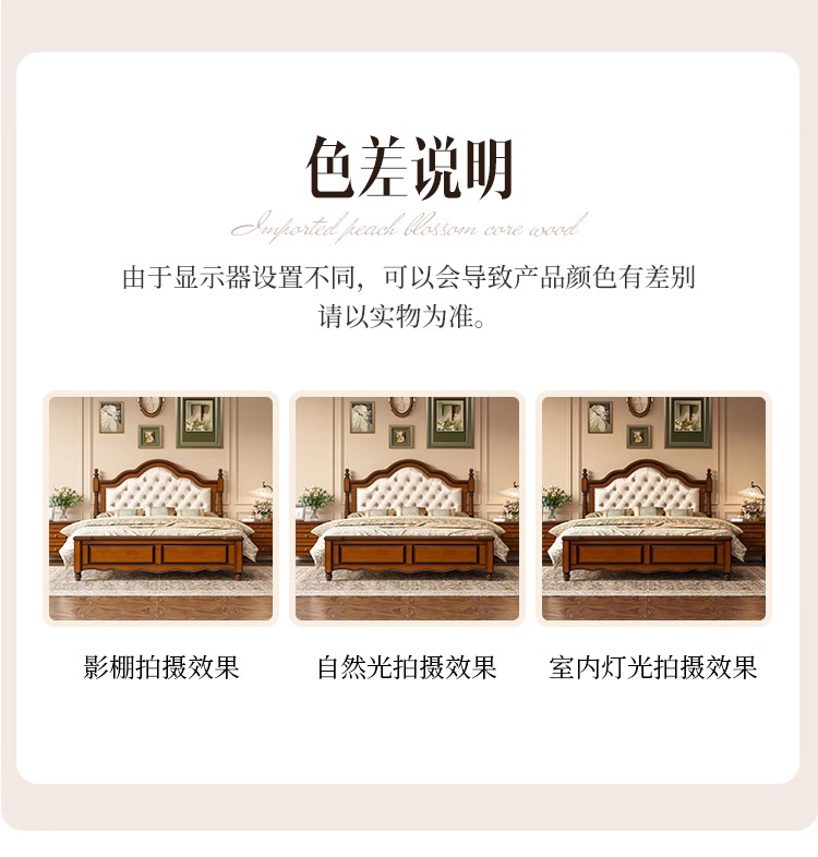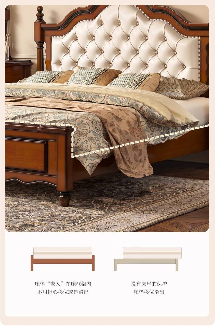 아메리칸 라이트 럭셔리 원목 침대, 마스터 침실, 고급스럽고 분위기 있는 복고풍 더블 침대, 모던하고 심플한 가죽 부드러운 등받이 수납 웨딩 침대스토어 가기